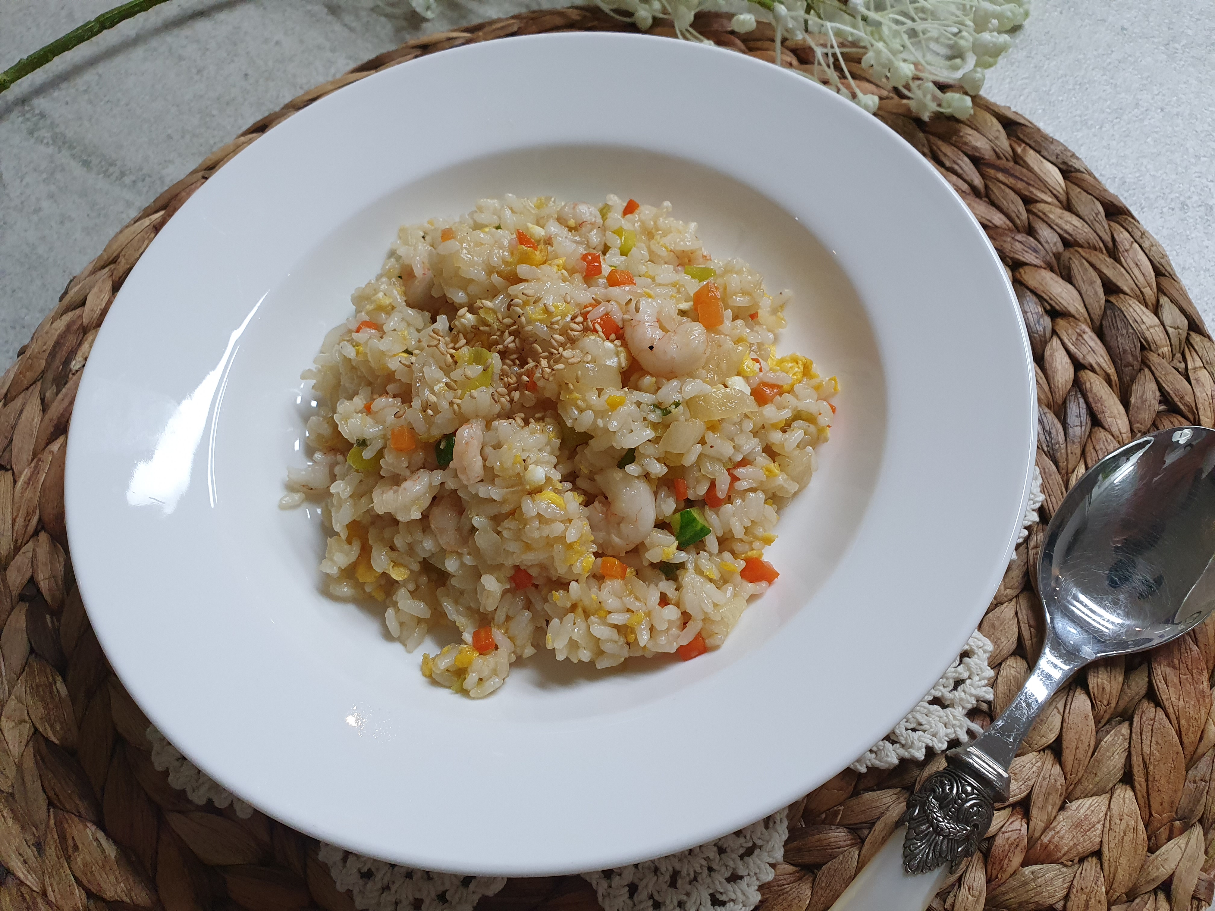 굴소스를 넣어 감칠맛이 좋고, 적당한 볶음밥의 간이 참 좋습니다. 다양한 야채가 들어가기 있기 때문에 영양도 만점인 새우볶음밥 집에서 간단히 만들어 드셔보시는 걸 추천드립니다.