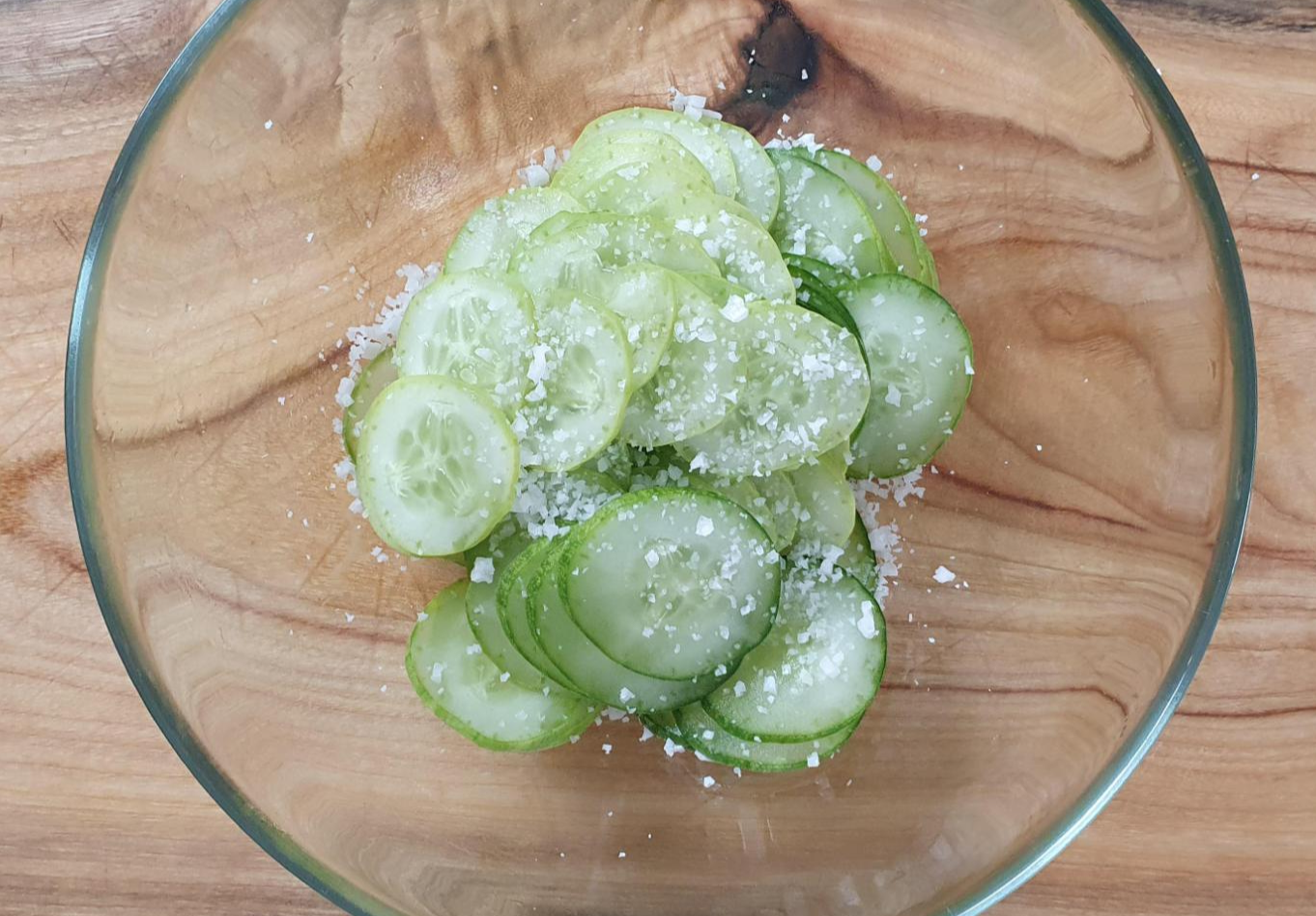 오이에 소금간이 그대로 남아있도록 유지해 주시는 것이 포인트입니다.