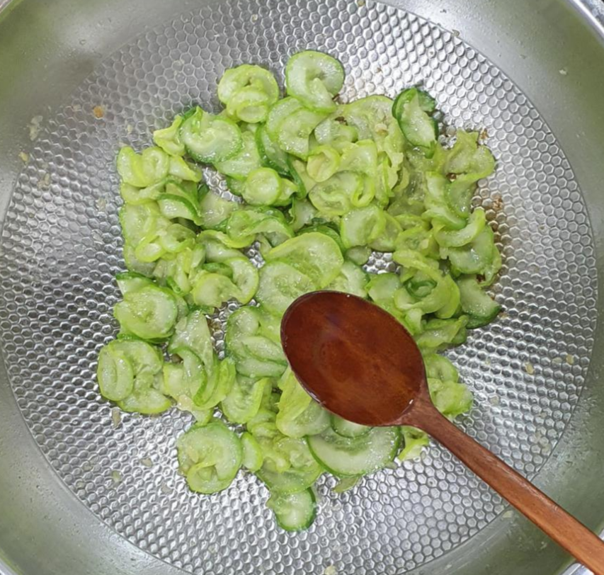 오이의 수분을 날리면서 다진 마늘이 볶아질 때까지 센 불을 유지하면서 달달 볶아 주시면 좋겠네요.