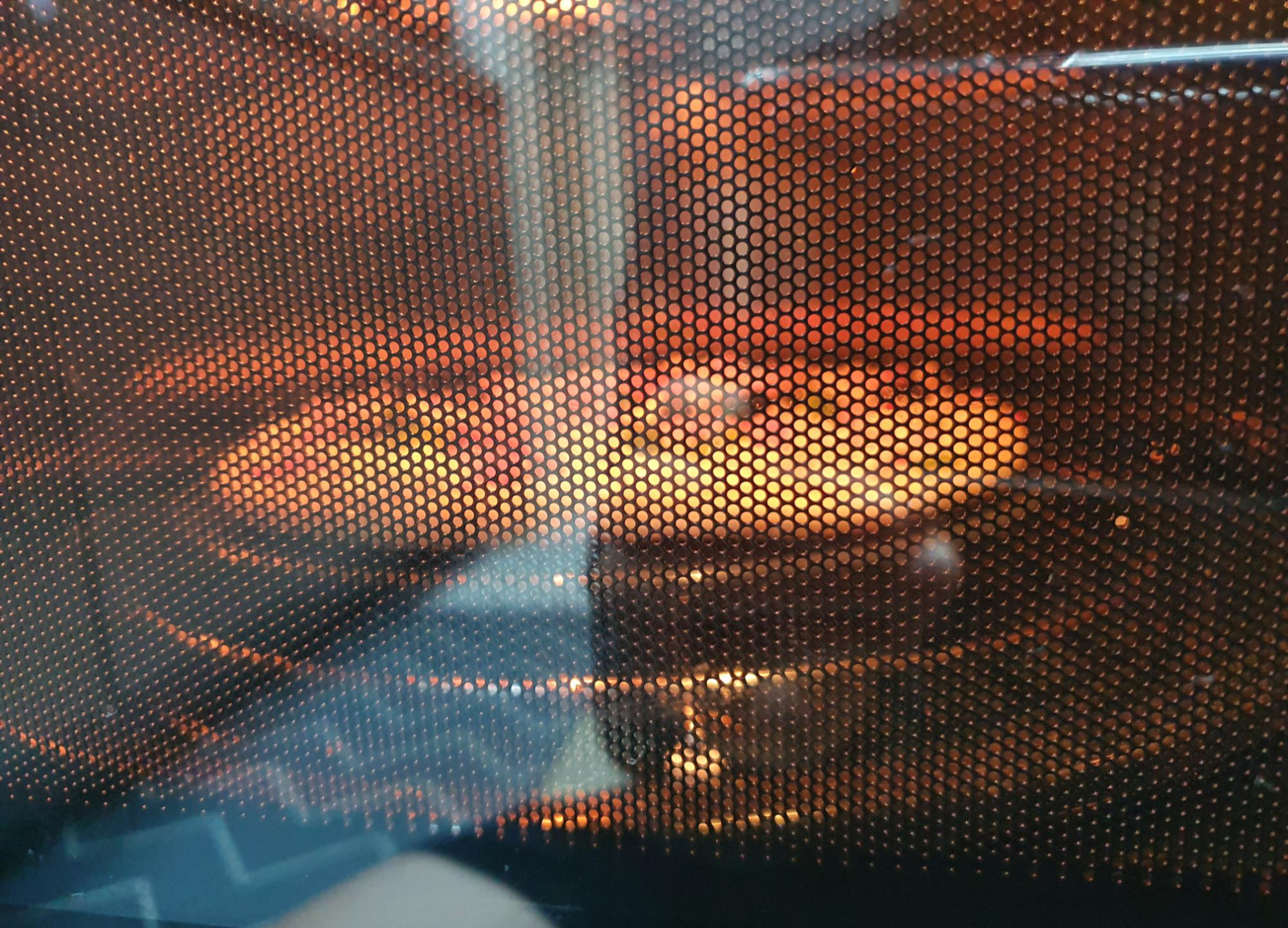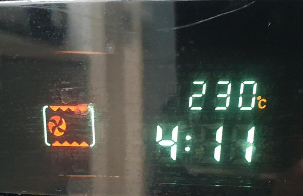 기다리다가 궁금하여 중간에 살짝 열어 보았습니다. 남은시간은 약 4분 정도 남아있을 때였어요~ 처음에는 반짝이는 얼음 알갱이가 보이는 것처럼 보였지만, 노릇하게 빵이 익어가면서 치즈가 녹아들기 시작하는군요~