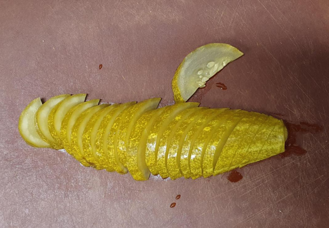 저는 통째로 되어있는 피클을 선호해서 먹을 때마다 썰어 먹고 있는데, 썰어져 있는 피클이 있다면 써는 과정은 필요가 없겠네요~^^ 아무튼 피클을 준비해 주었네요!