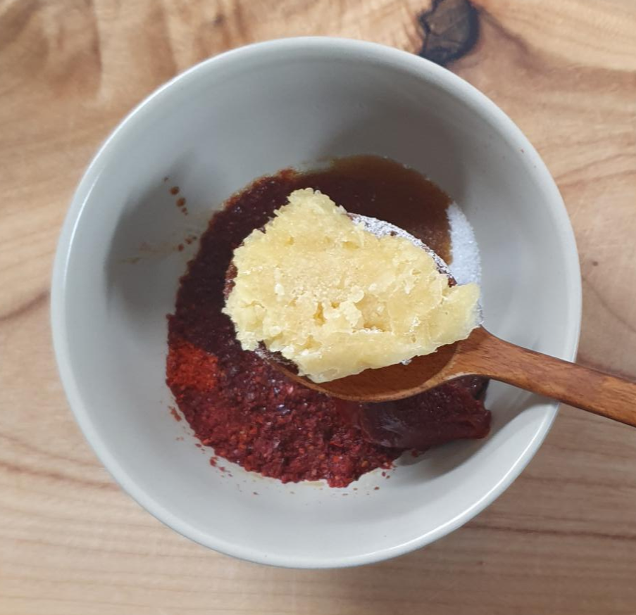 그리고 매콤한 맛을 내기 위한 재료 중 1가지인 고춧가루를 1스푼 추가해 주세요.