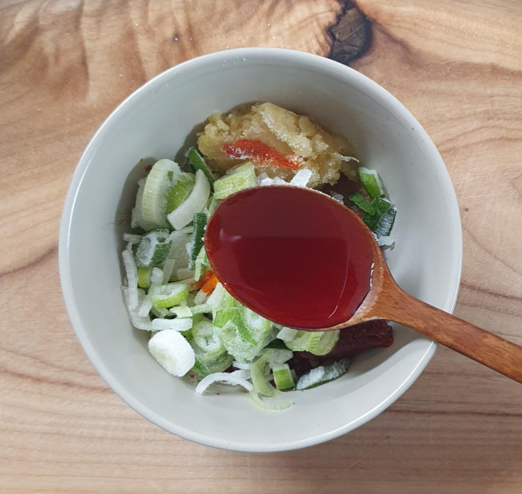 대파는 냉동고에 보관 중이던 대파를 사용하여 한 줌 정도 넣어주었습니다.
