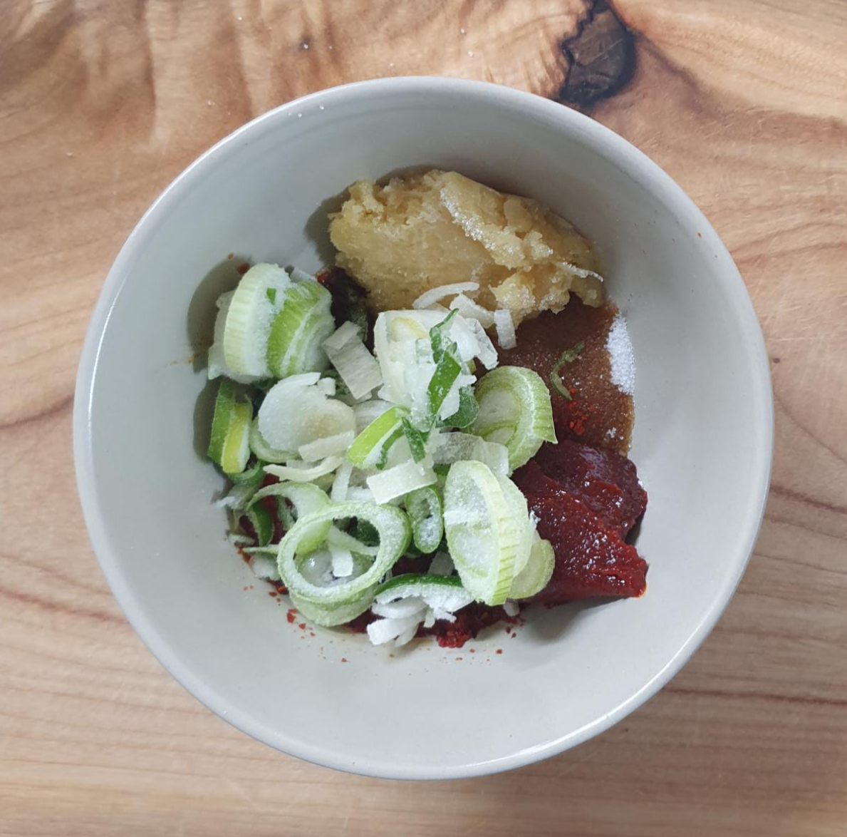 매콤한 맛을 위해서 고추장을 반 스푼 정도 추가로 넣어 주시고요.