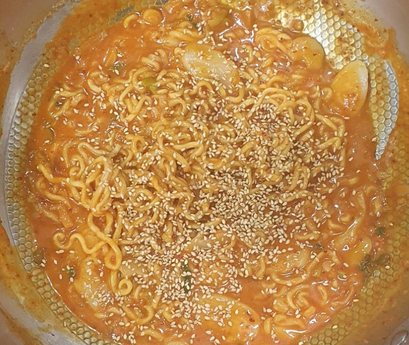 마지막으로 통깨 솔솔 뿌려 주시면 라볶이는 마무리되겠습니다. 와우... 최고의 야식 라볶이 완성되었습니다.~!^^