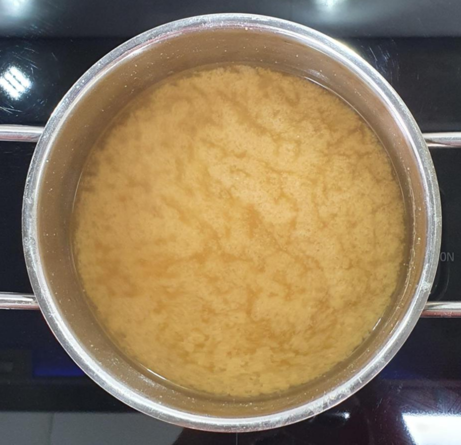 완성된 육수에 아와세 미소된장을 반 스푼 추가하여 주세요. 아이가 먹기 위해서 심심한 간을 유지하기 위함이라 많이 넣지는 않았어요.