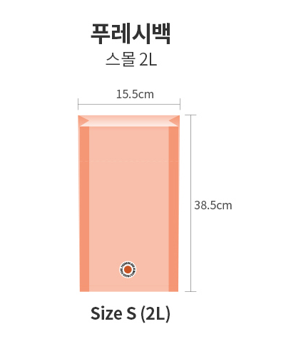 15.5cm x 38.5cm 크기의 비닐로 구성되어 있는데 약 2L 용량으로 사용이 가능합니다. 웬만한 식재료들은 거진 커버될 수 있는 크기가 되는 것 같아요~