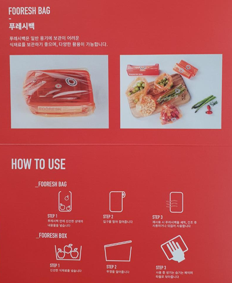 조금 더 자세한 세부사항은 홈페이지에서 기재되어 있습니다. ^^ 내용을 보면 신선한 제품을 오래 보관할 수 있지 시든 재료들은 오래 보관할 수 없고, 물기를 잘 제거해야 더욱 오래간다~! 이런 내용들로 구성되어있는 듯합니다.