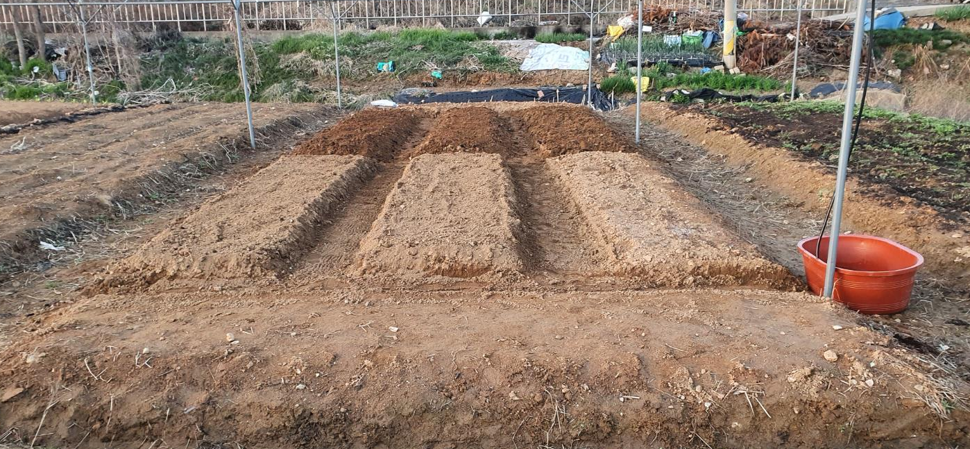 3월 첫 번째 방문하여 작년 텃밭 주인분께서 진행한 작물의 뿌리와 돌뿌리들을 고르면서 두둑과 이랑을 구분을 어설프게 했었는데요.