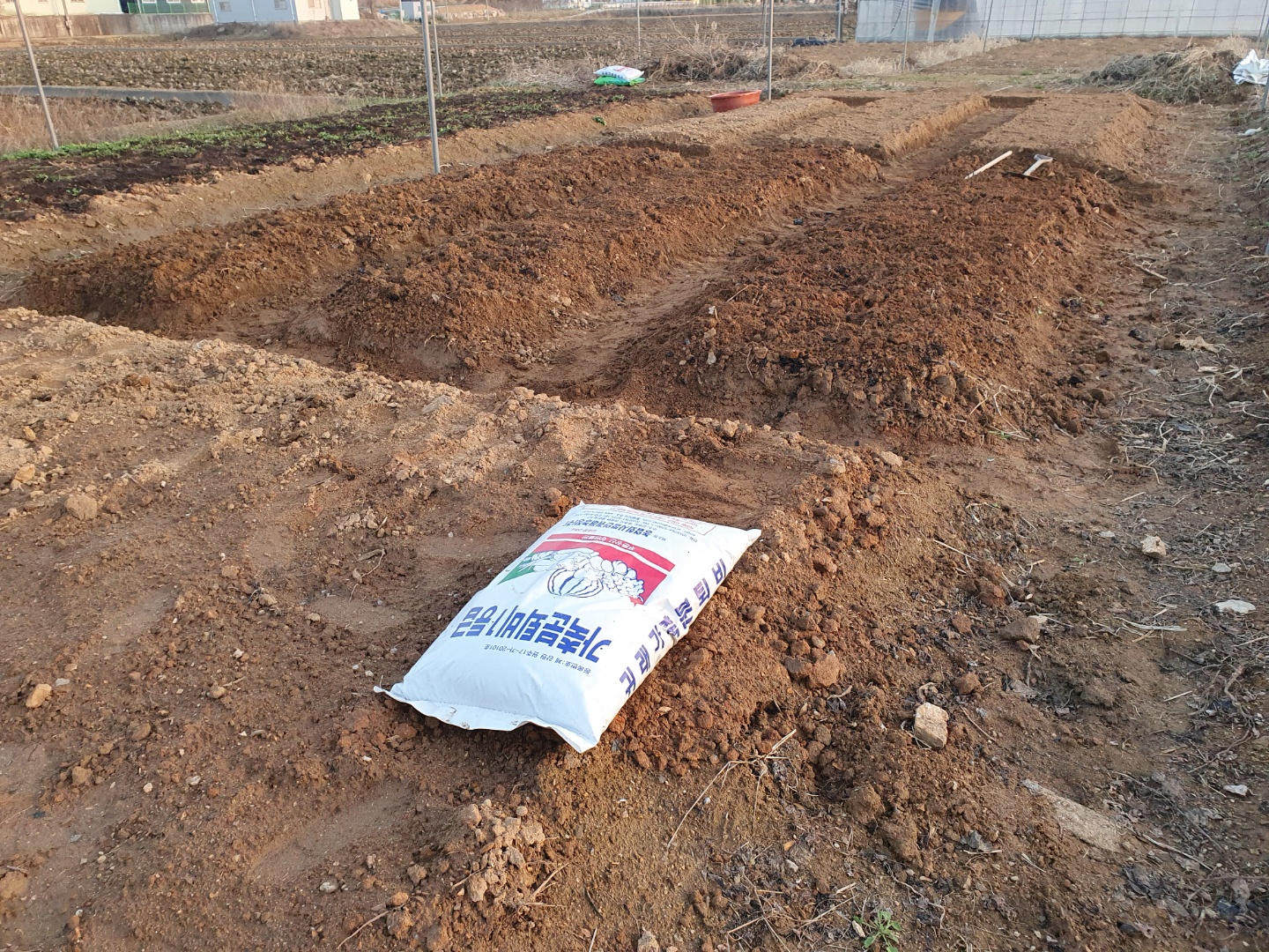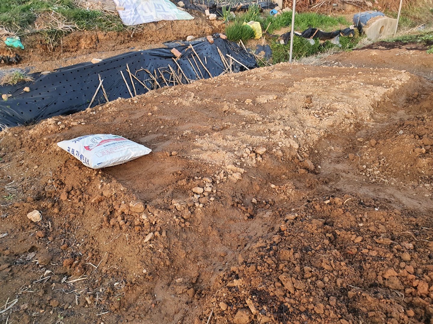 마지막 남은 이랑에는 계획하고 있는 작물이 고구마이기 때문에 퇴비가 많이 필요하지 않아요.