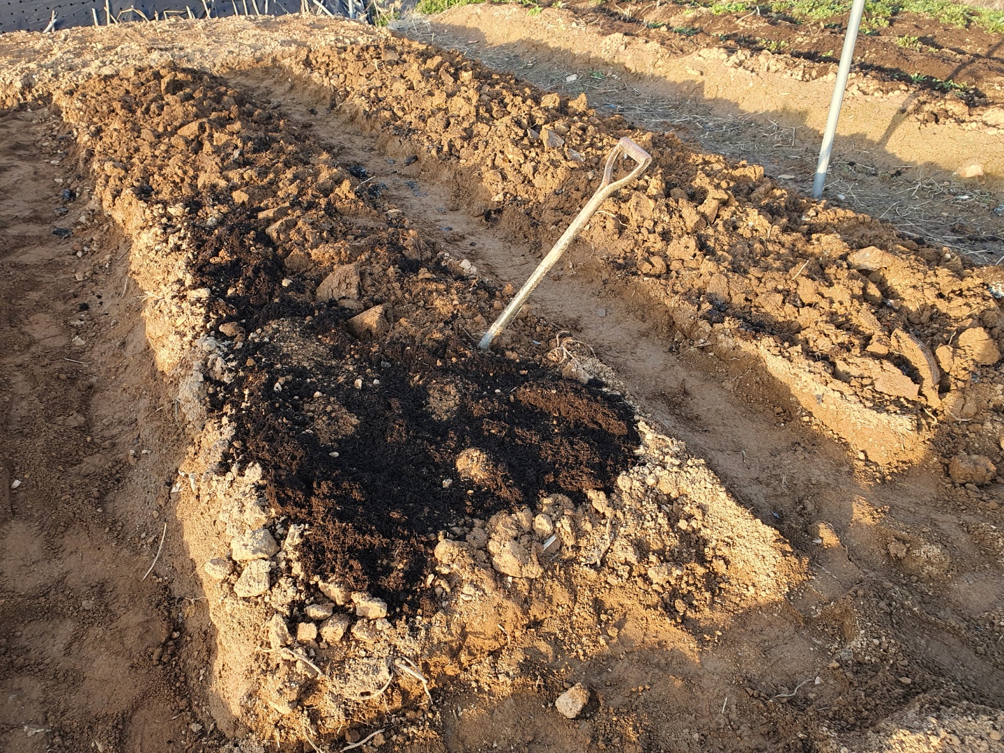 저번 텃밭 만들기 포스팅에서도 말씀드린 바와 같이 두둑을 만들어 놓으셨다면, 갈퀴를 이용해 퇴비를 위쪽에 고르게 펴서 올려 주신 다음 삽을 이용해서 두둑을 뒤집어 주듯 섞어 주어야 한다는 것 기억하시죠?