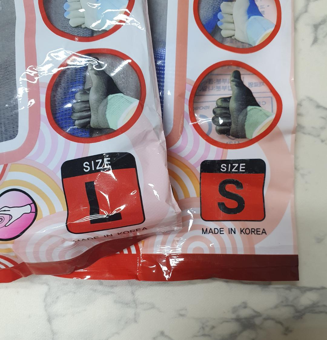 와이프님은 사이즈 S / 저는 사이즈 L 을 준비했어요. 저는 손이 보통보다 크고 와이프님은 보통보다 손이 작은 편이라 사이즈가 살짝 걱정이 되었지만 일단 주문해서 도착했네요.