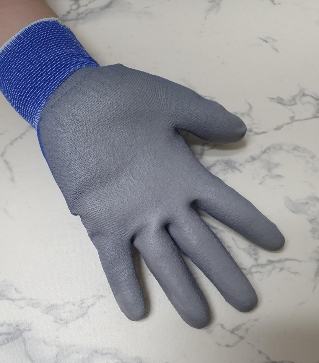 장갑을 만든 천 자체도 얇고 고무코팅도 얇아서 일반적으로 저희들이 알고 있는 빨간색으로 코팅된 면장갑보다야 불편함 없이 쓸 수 있겠다는 생각을 했습니다.