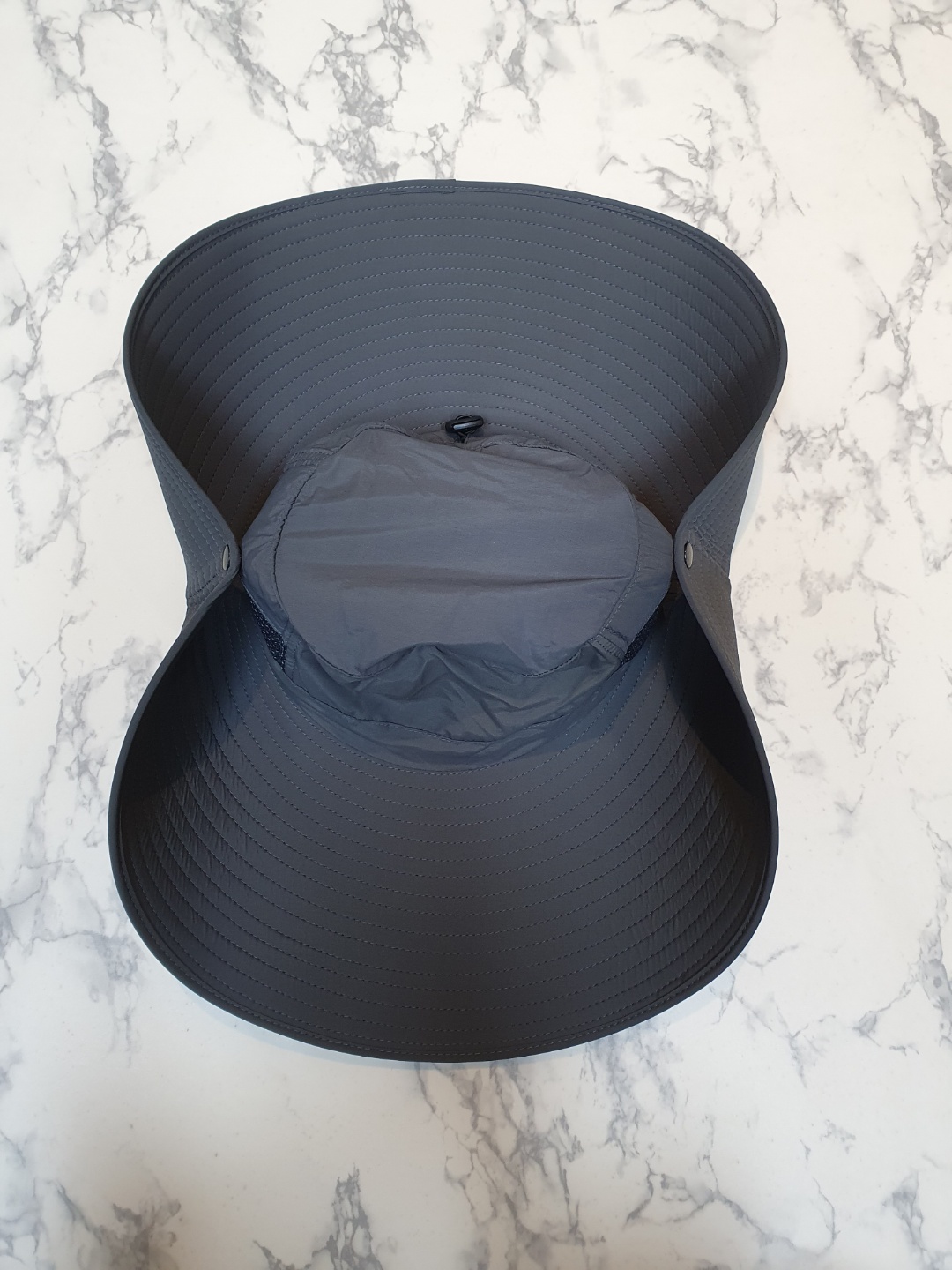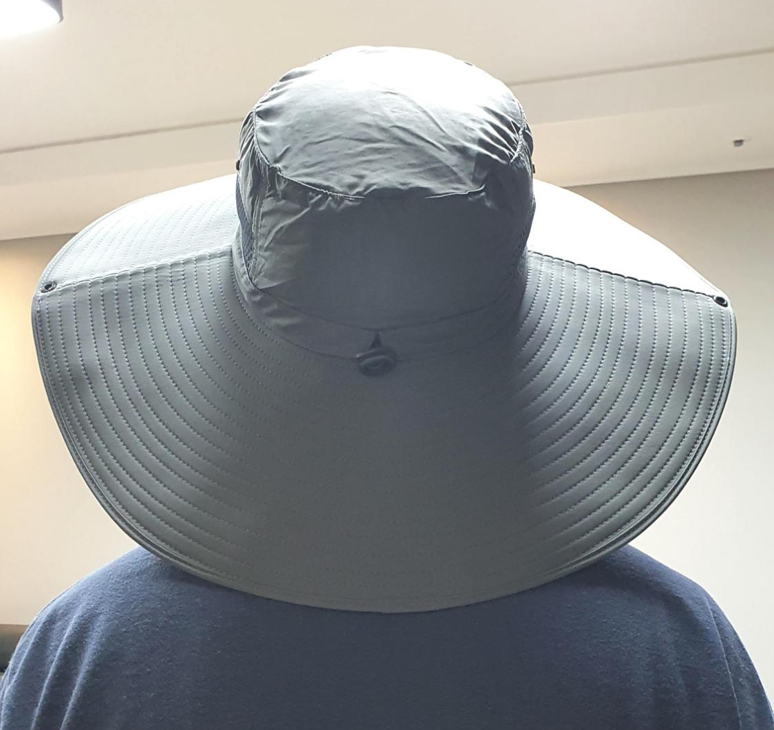 지름이 50cm 인 와이드 모자 , 창의 크기가 어마어마 하다는 것이 눈에 확 들어오네요. 정말 생각 외로 너무 큽니다.