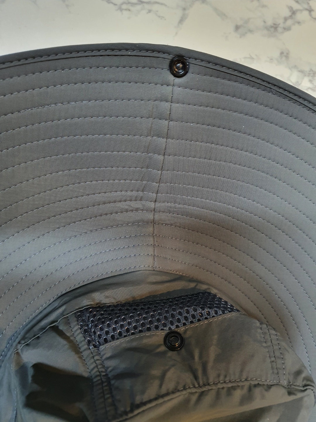 빗소리 모자의 또 하나의 특징이 사이드 통풍구가 있다는 점입니다. 머리 부분의 천 자체도 두껍지 않아 좋지만, 통풍구가 마련되어 있어서 더욱 머리 부분을 시원하게 할 수 있겠어요. 착용감에 도움이 되는 것 같습니다.