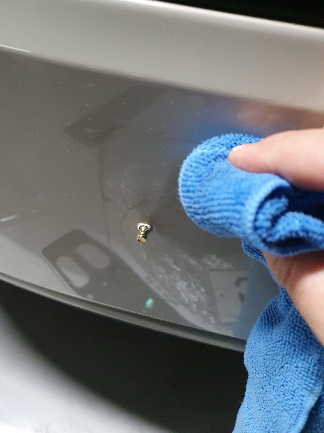이렇게 앞번호판 케이스와 몽키스페너, 걸레를 챙겨 지하에 도착해 바로 앞번호판을 제거해 줍니다.