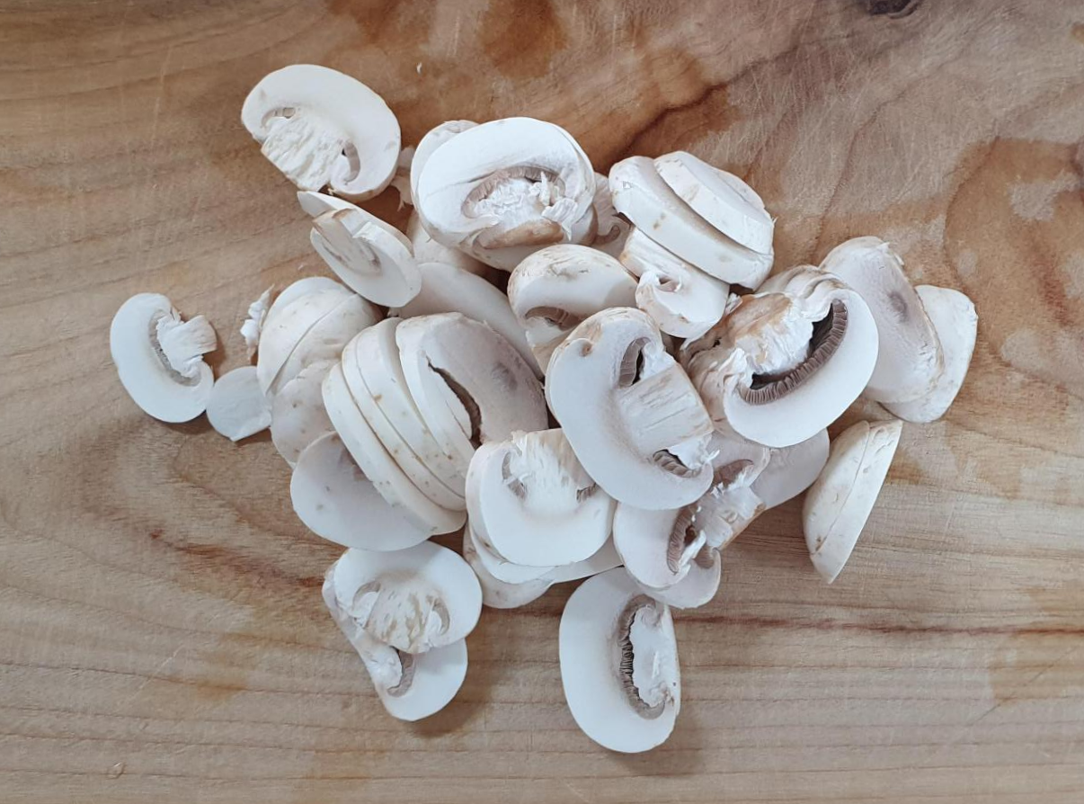 피자에 맛을 고급지게 만들어 주기 위해서 양송이버섯을 준비했어요. 양송이버섯이 들어가면 피자향이나 맛이 올라가서 식빵을 이용한 피자를 만들 경우에는 항상 넣어주는 재료입니다.
