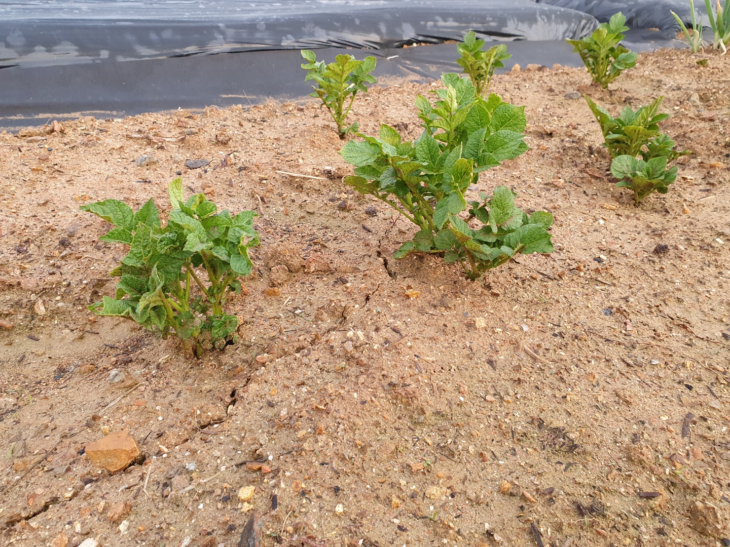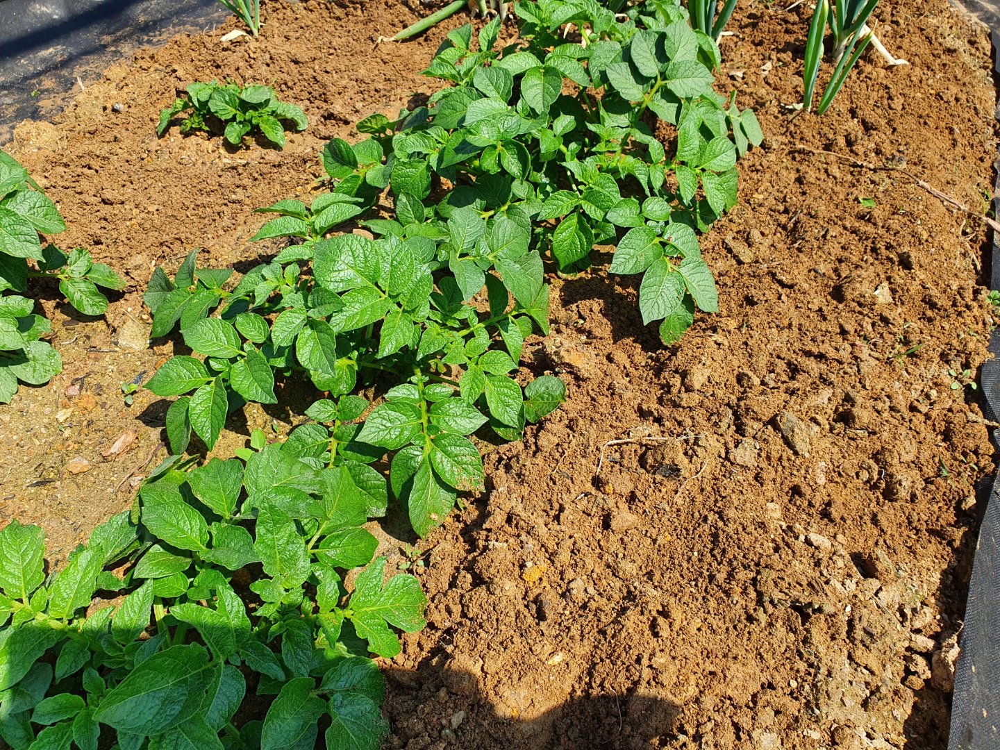 씨감자를 심고 난 뒤 2주 차에 싹이 올라오면서 감자의 새싹이 올라오기 시작했네요.