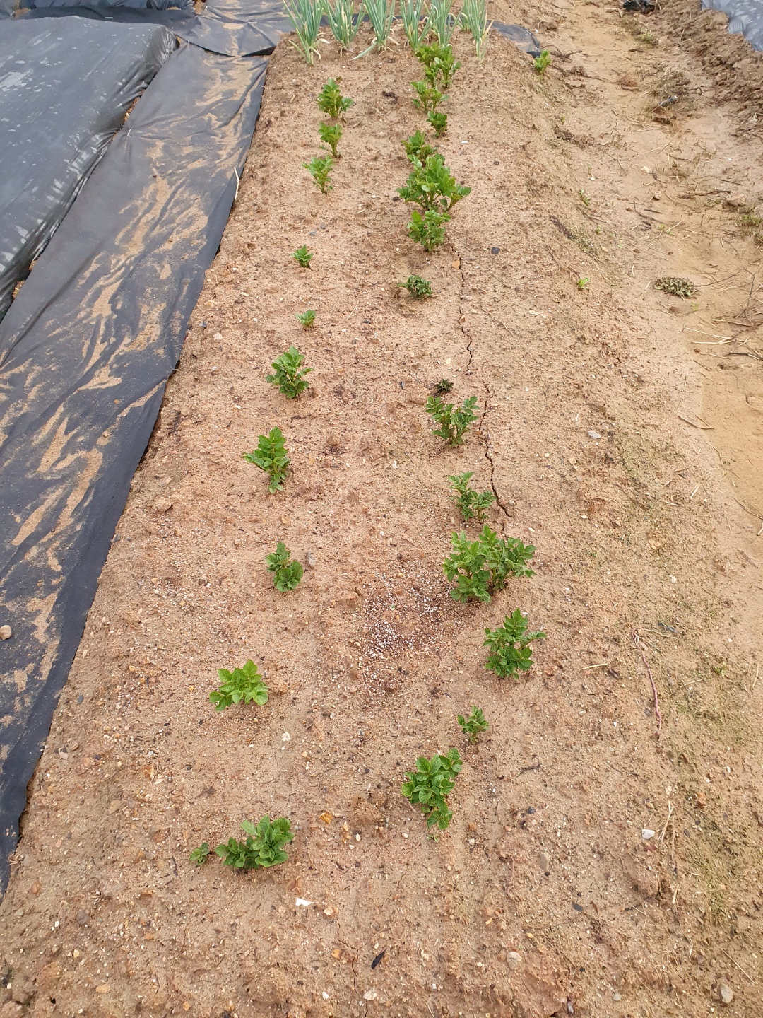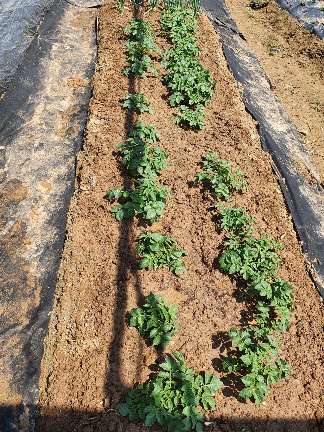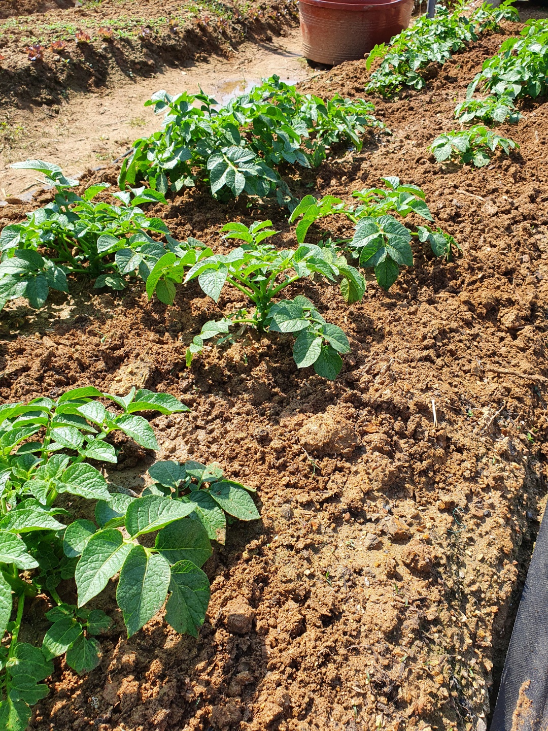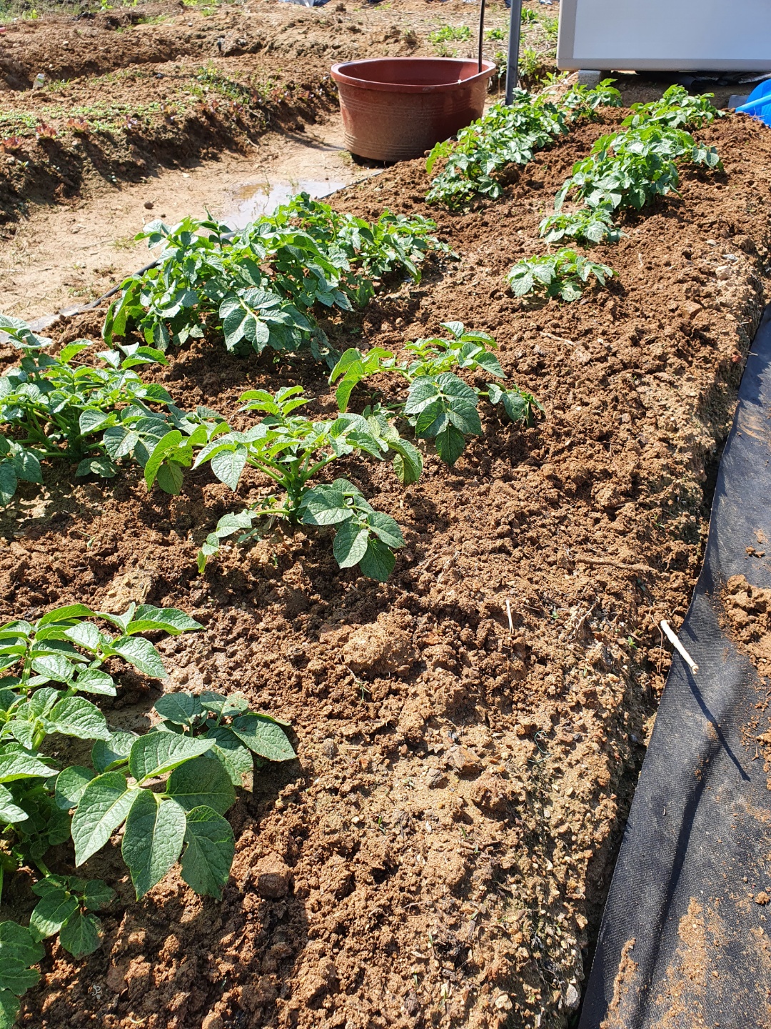 저번 주에 이가 빠진 듯이 빈 곳이 보인 자리들도 하나둘 감자 싹이 올라오고 있는 모습이에요. 조금 늦었지만, 그래도 올라오고 있는 모습이 기특하죠?^^