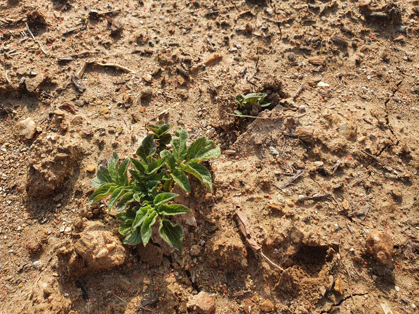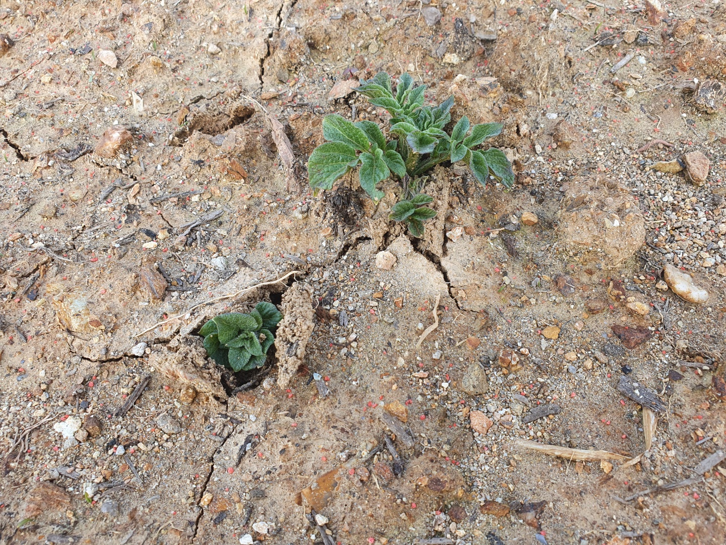 땅이 갈라지면서 올라오는 구멍을 만들어 올라오고 있는 감자의 모습. 생명력을 여기서 느끼게 되는 것 같습니다.