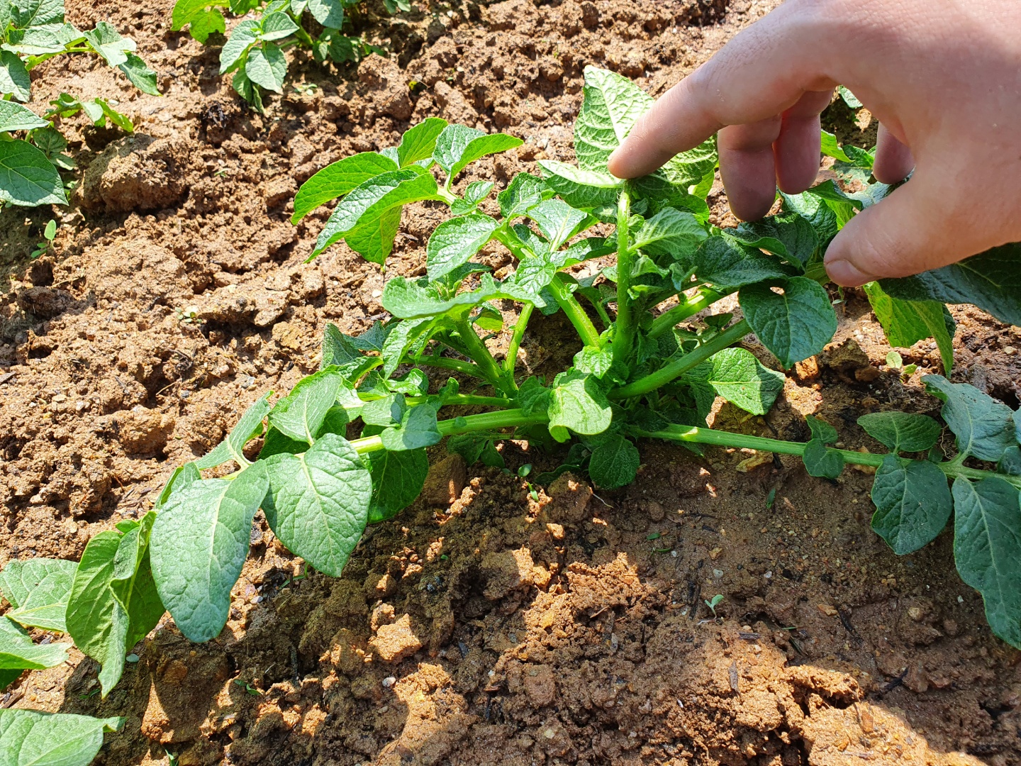 감자를 관리하기 위해서는 줄기도 정리해 주면 좋은데요. 아직은 자리 잡고 어린 감자이기 때문에 아직 성장을 하기 위해서 줄기를 정리하고 있지는 않습니다.