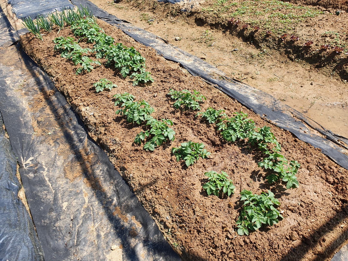 4월 4주 차에 방문하여 감자의 성장과정을 관찰한 모습입니다.