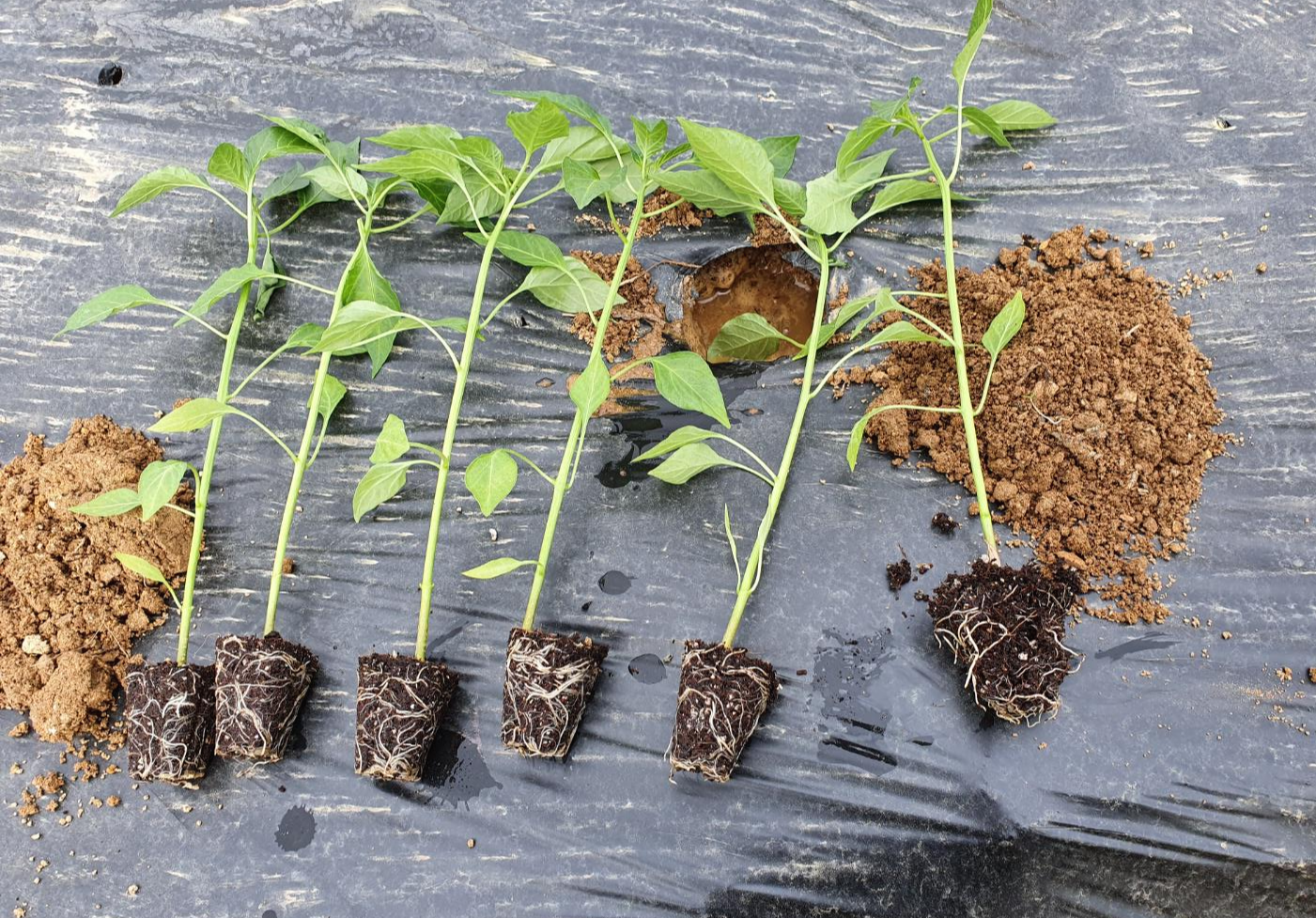 모종을 심을 시간이 오게 되면 굉장히 중요한 점 한가지가 더 있는데요. 줄기와 뿌리의 경계가 두둑의 밑면과 일치하도록 심어주어야 한다는 것.