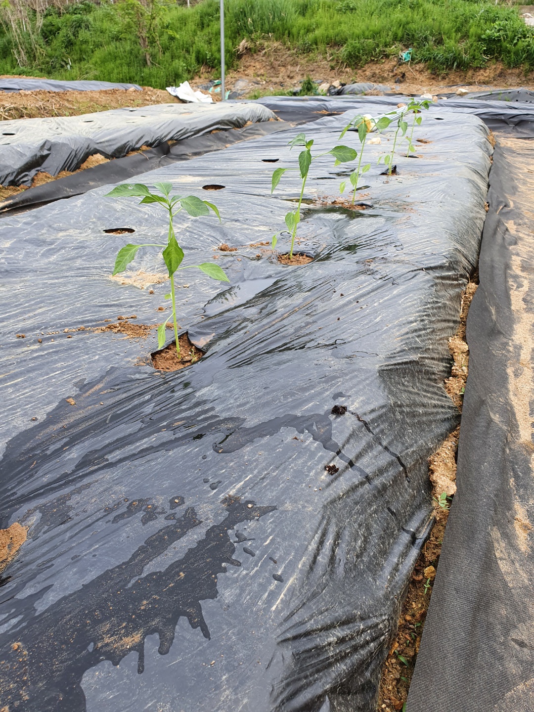 고추에서 가장 중요한 것은 두둑을 높게 만들어 주어, 장마가 왔을때 고추의 뿌리가 물에 잠기지 않도록 하는 것이 첫째,