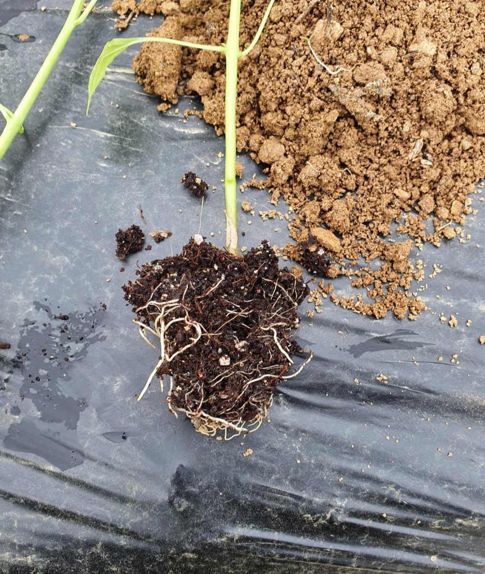 고추는 혼자힘으로 서있는 힘이 굉장히 악하기 때문에 뿌리를 조금 더 뻗어 나갈 수 있도록 작업을 해주는 것이 좋아요.