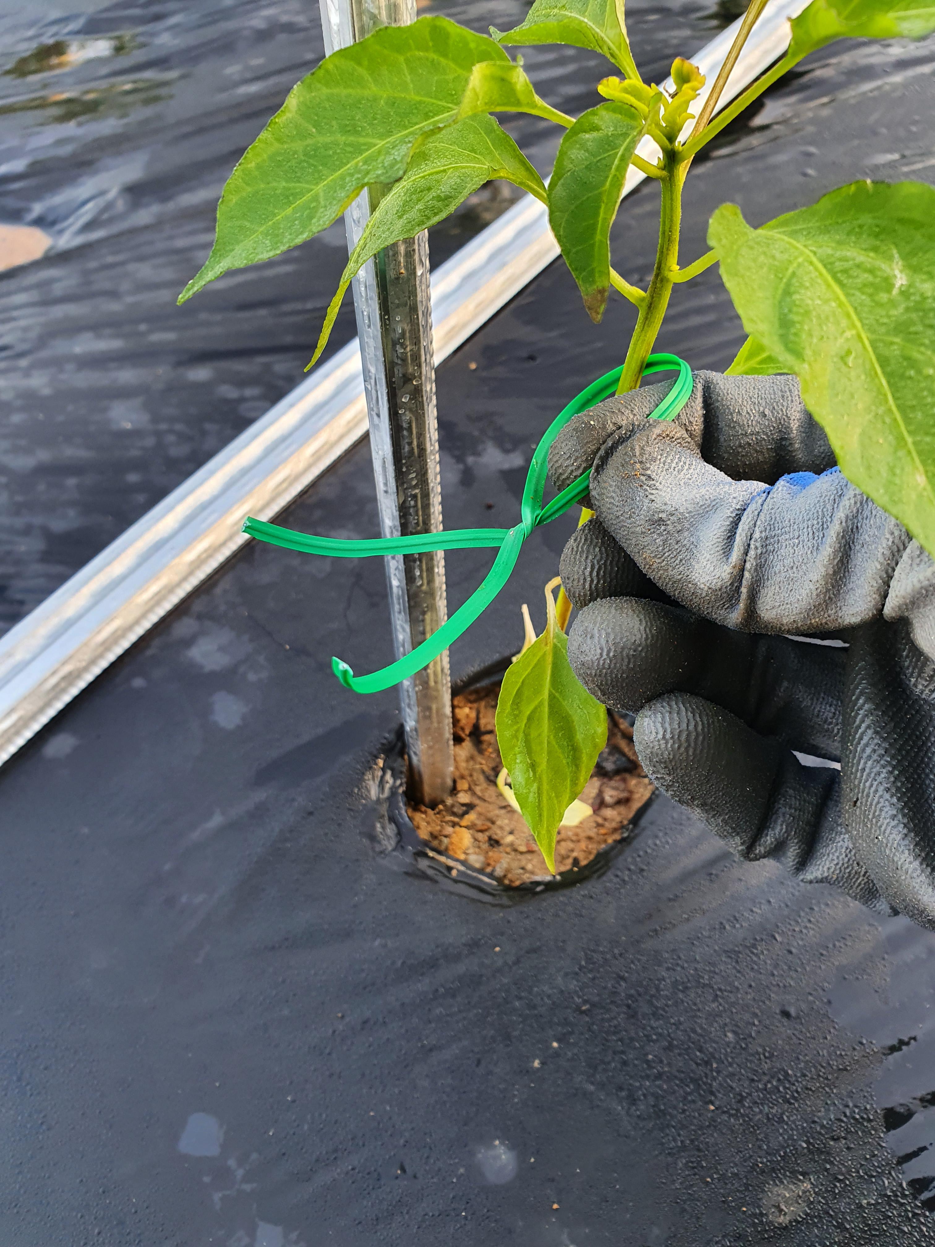 지주대를 잘 박아주셨다면, 지주대와 고추모종을 연결해줄 차례이겠죠?