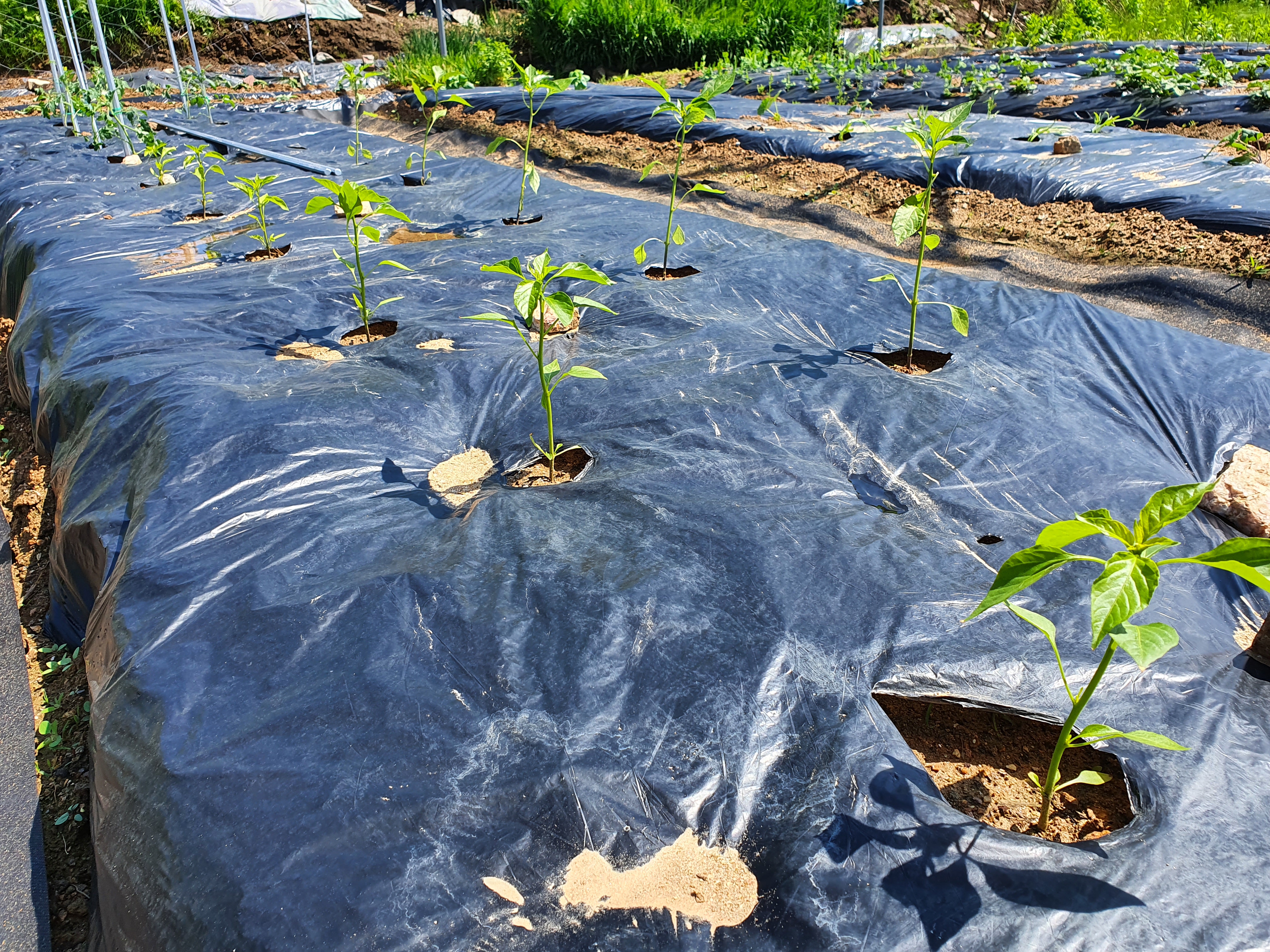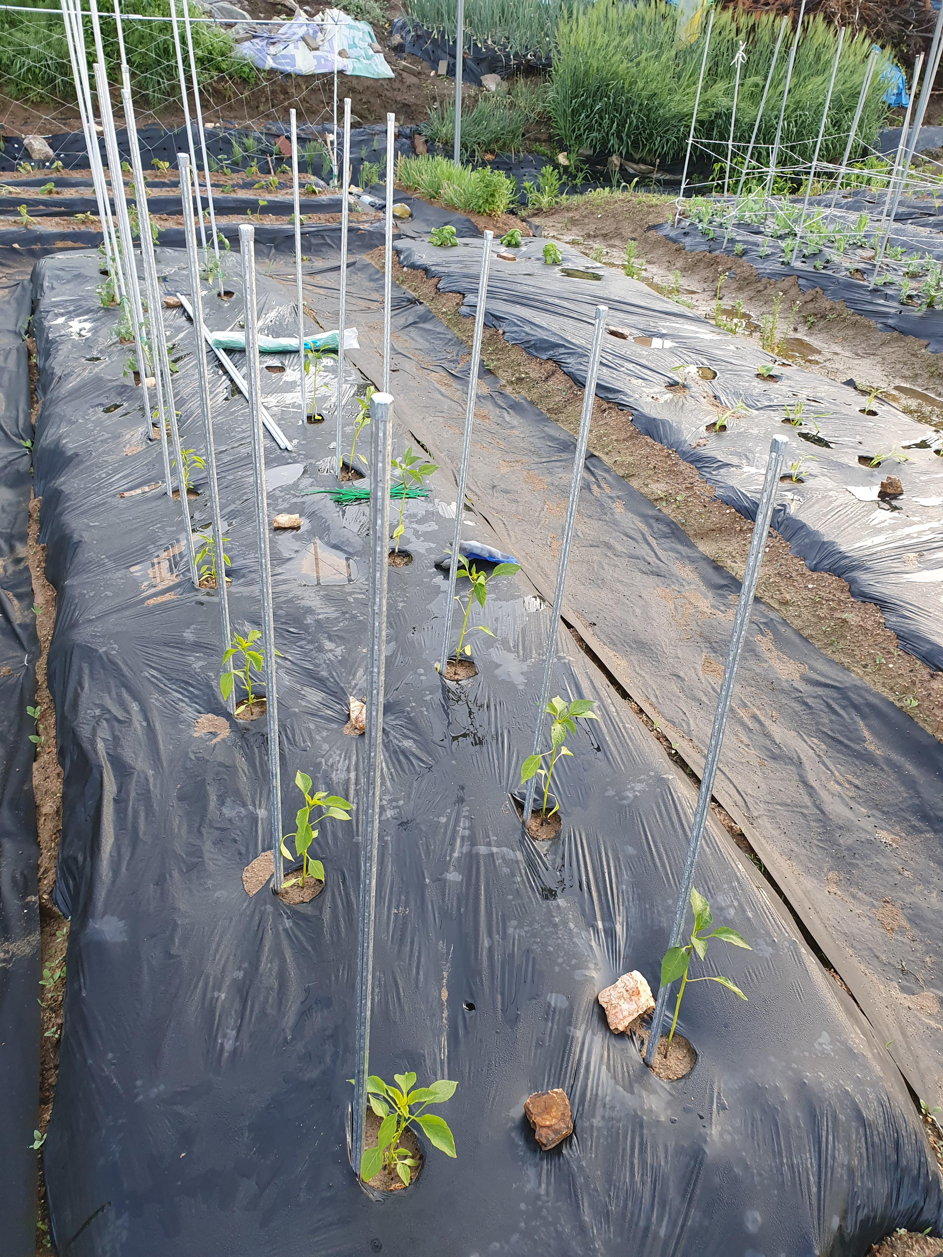 지주대가 여유가 있다면 지주대를 고추모종 하나하나에 받아 주시는 것을 추천합니다. (개인적 의견이에요)