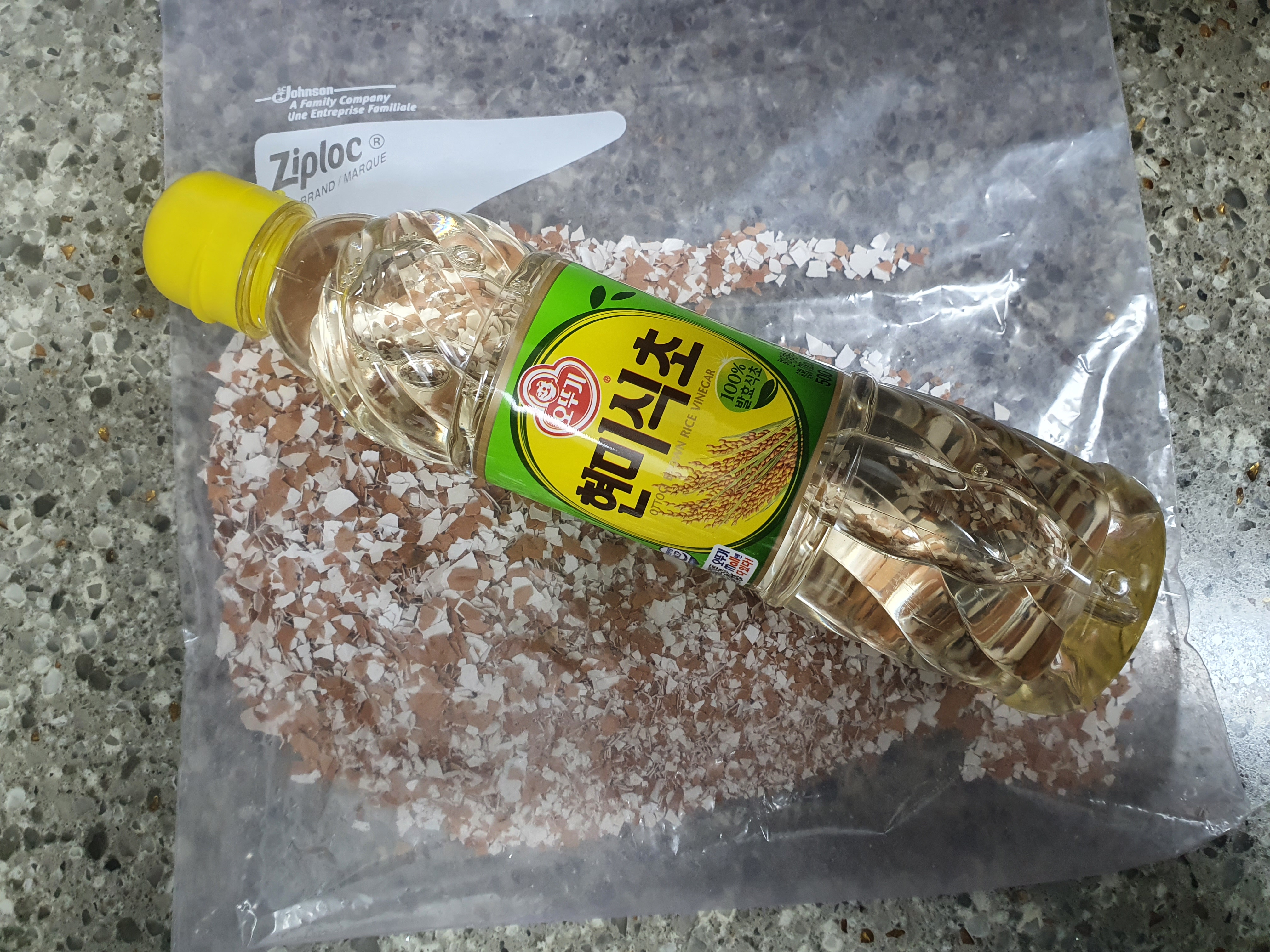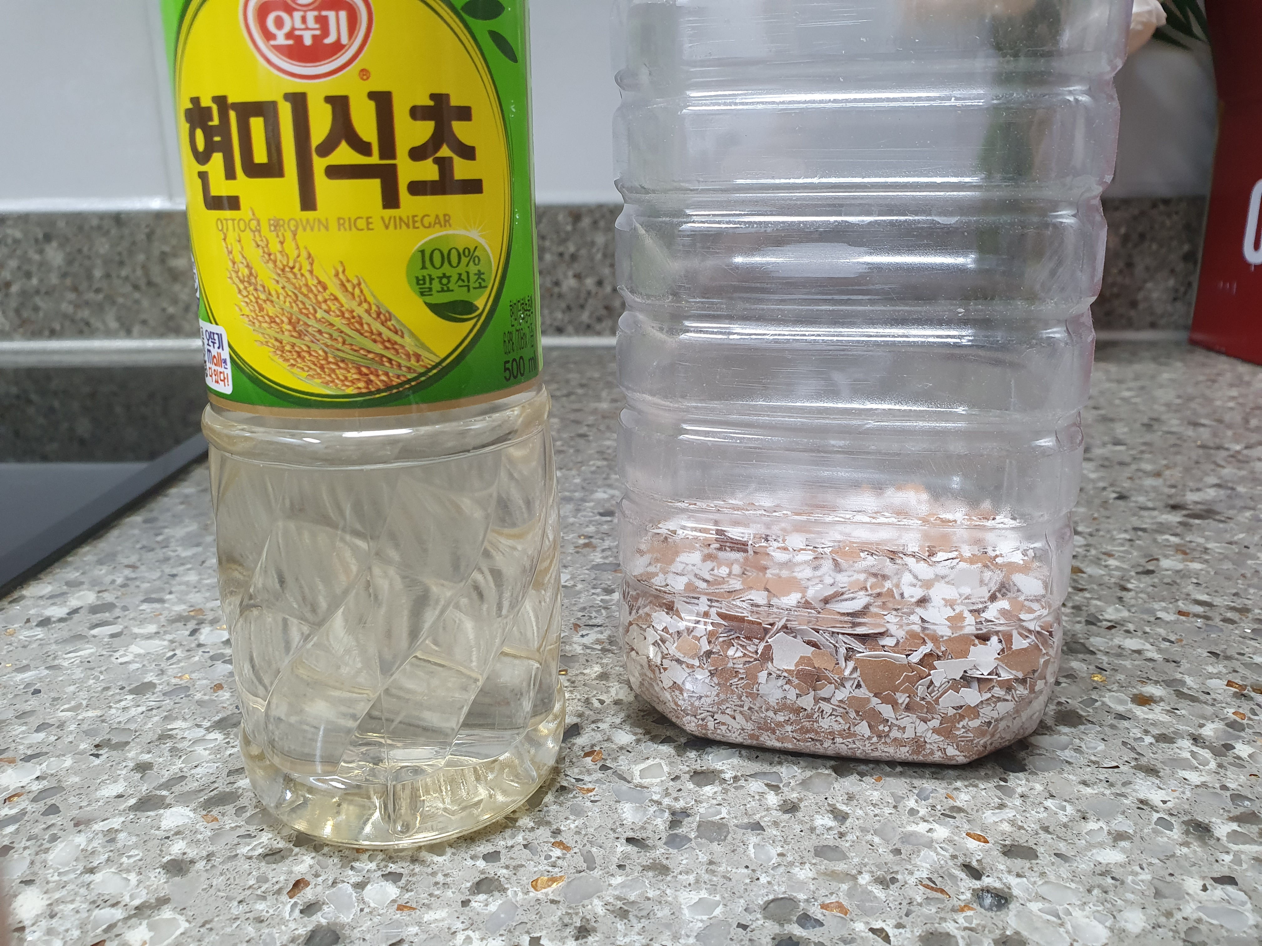 만약 뚜껑을 닿게 되면 계란껍질과 식초가 반응하면서 생기는 가스가 터져버릴 수 있어요. 헐... 생각하기도 싫어요.