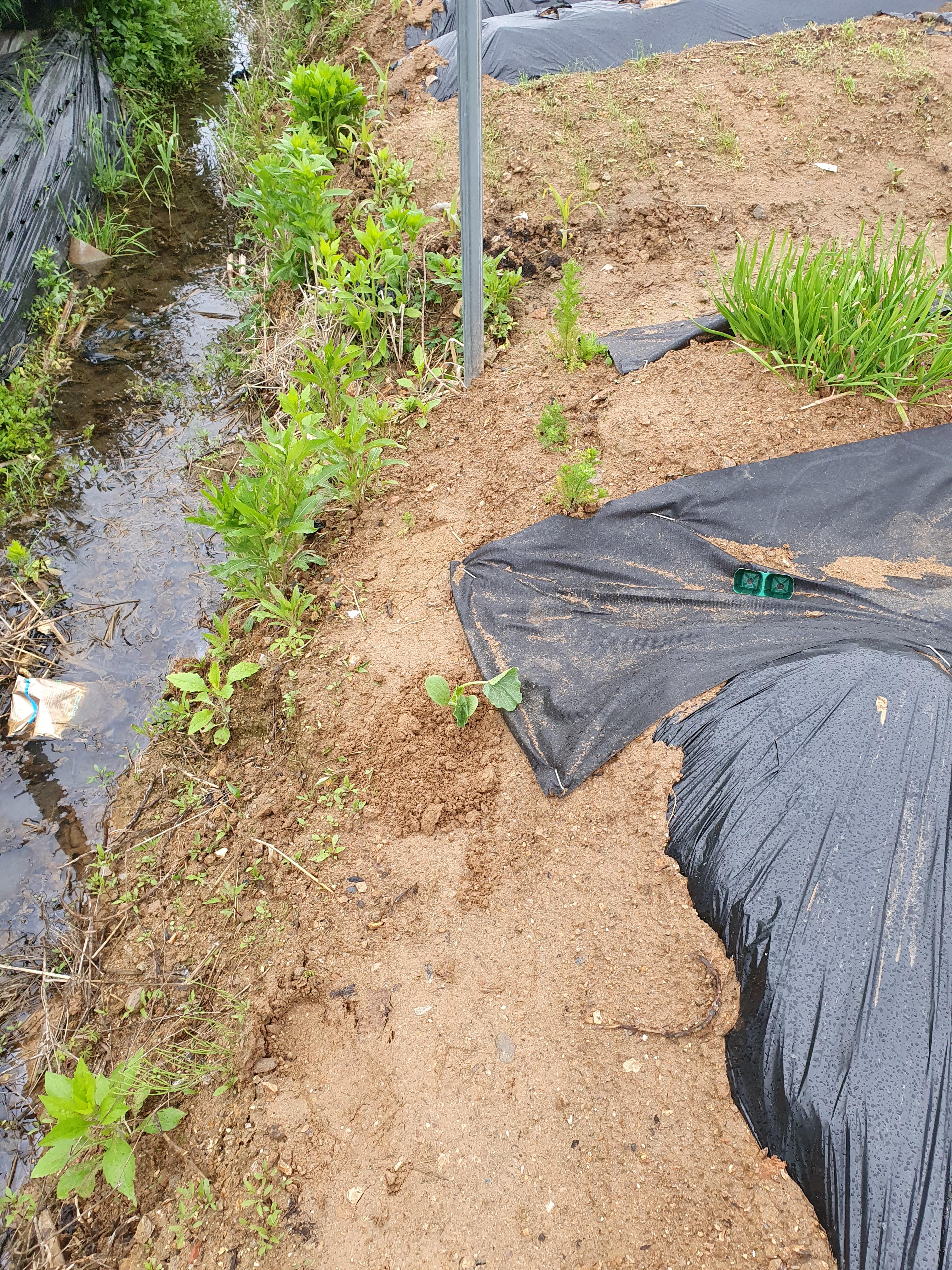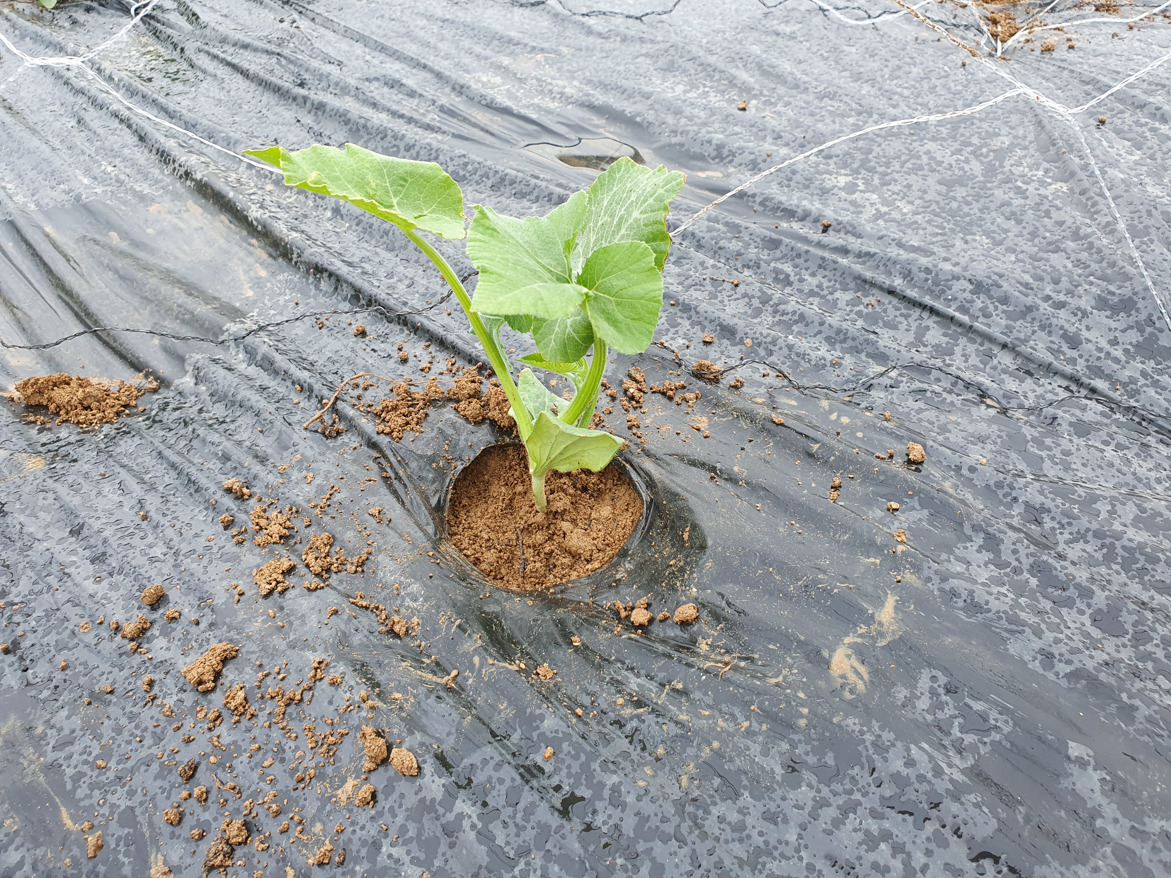 단호박 모종 1개는 지주대를 설치한 이랑에 모종심기( 모든 호박 모종 동일한 방법으로 진행 )를 했고, 나머지 한 개가 부족하네요. ~