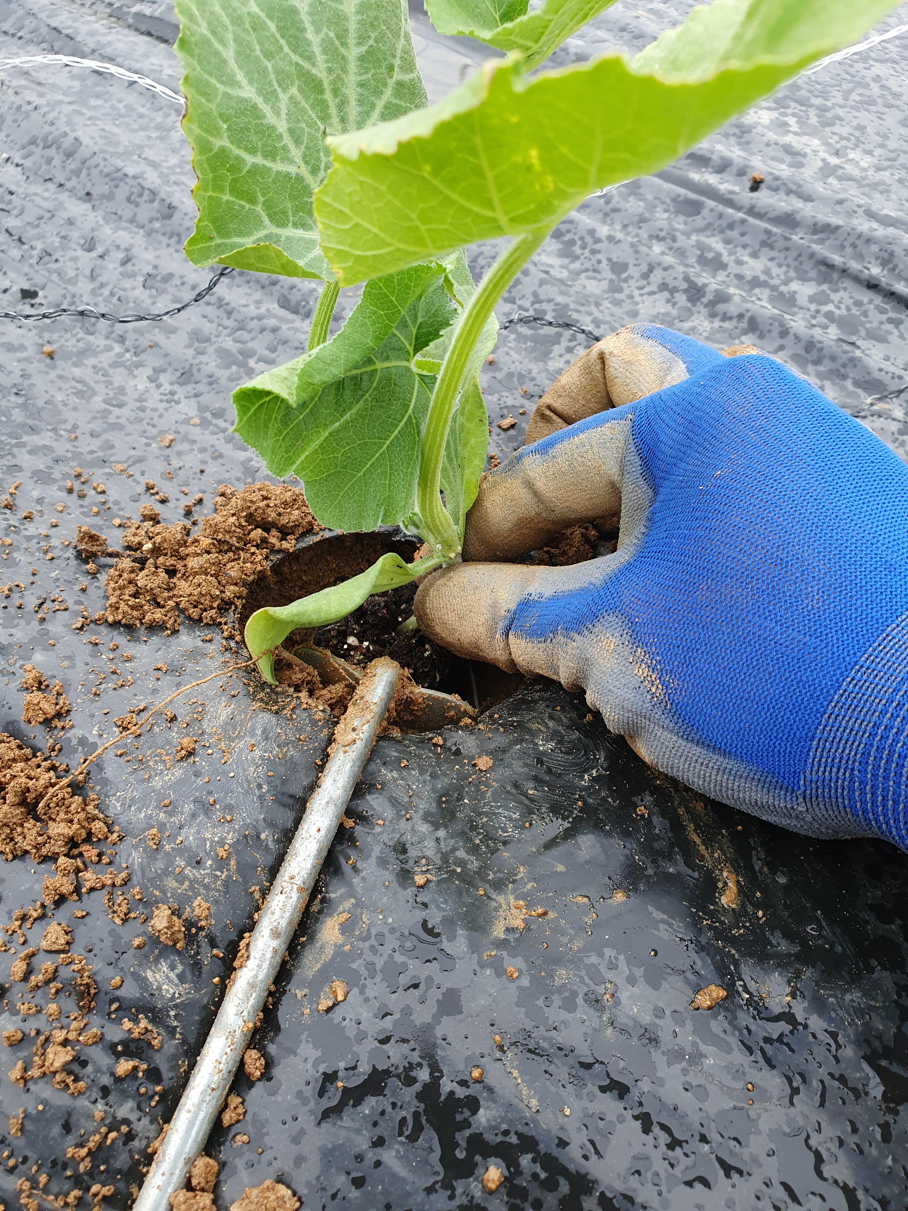 만들어 놓았던 두둑과 모종이 수평이 되는 깊이에 맞춰 심어 주시면 되겠습니다. 모종이 두둑 위쪽으로 올라오거나 , 두둑 아래쪽으로 내려가는 것은 안 좋으니 수평에 맞추어 심어주시길 바랍니다.