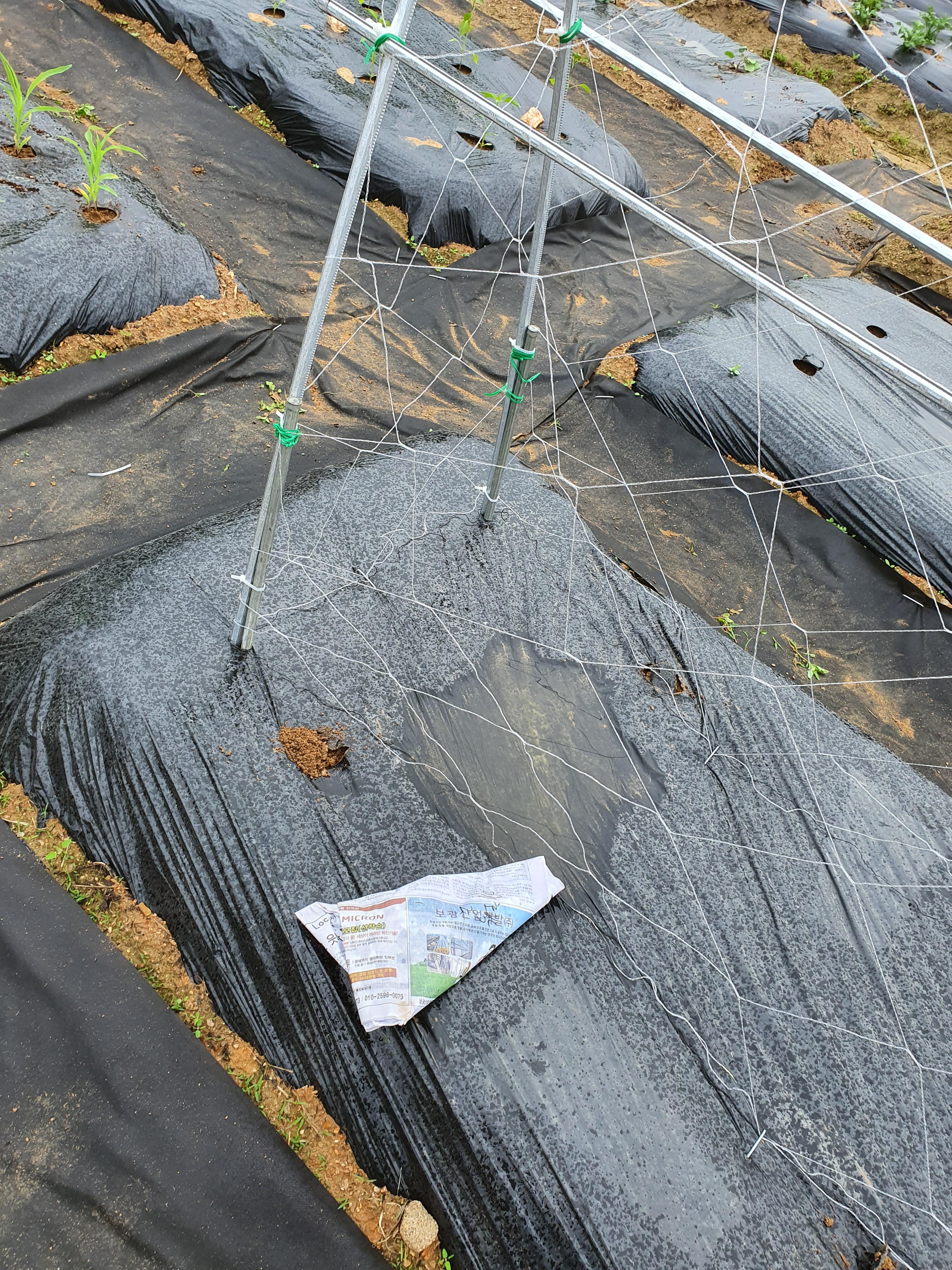 참고사항으로 호박은 호박망에 설치해야 하는 것 아니야 라고 하시는데 오이망과 호박 망은 사각형 크기가 호박 망이 조금 더 커요.  굳이 돈 주고 사야 하나 싶어서 저는 오이망으로 전부 통일했습니다.