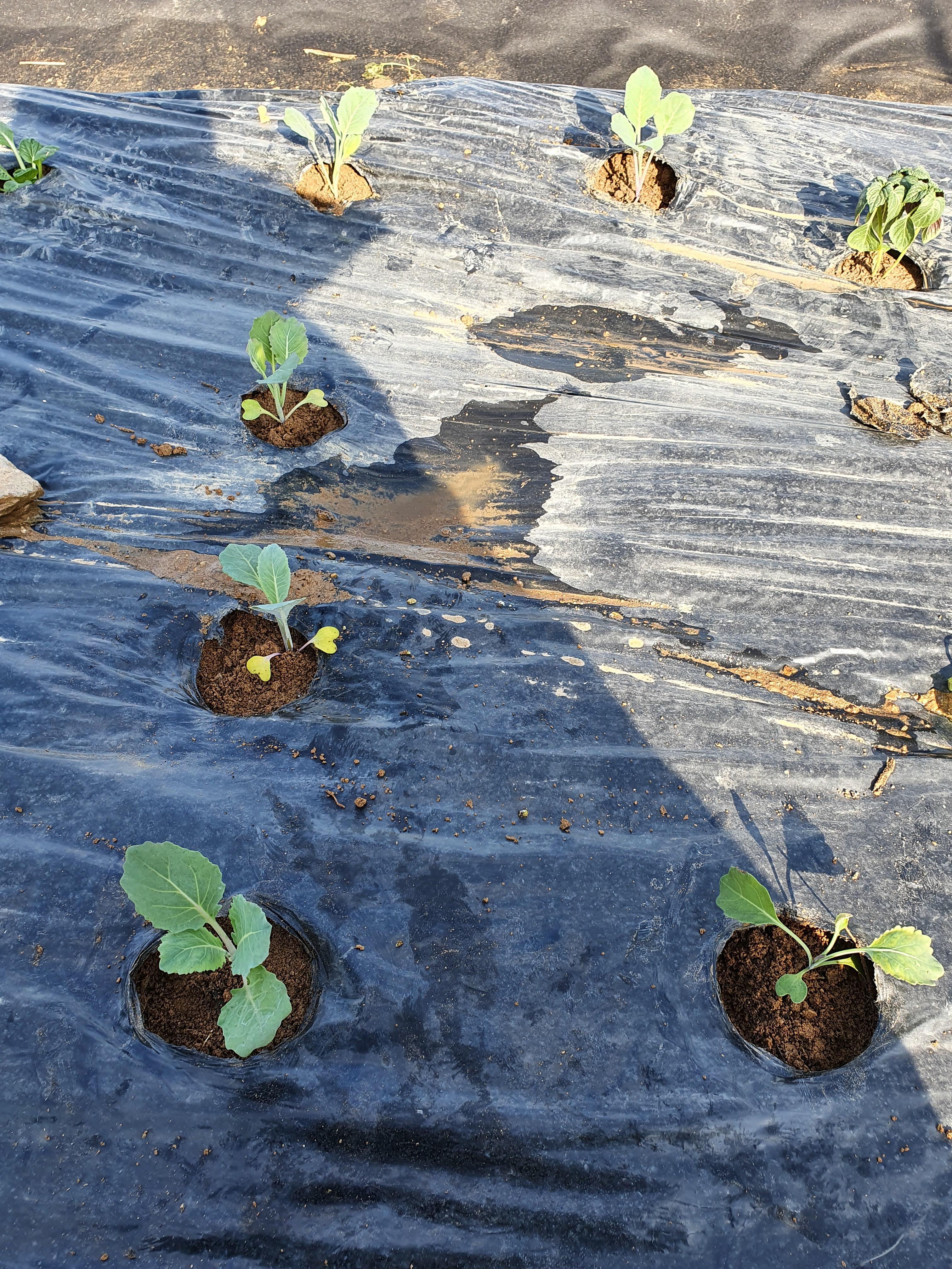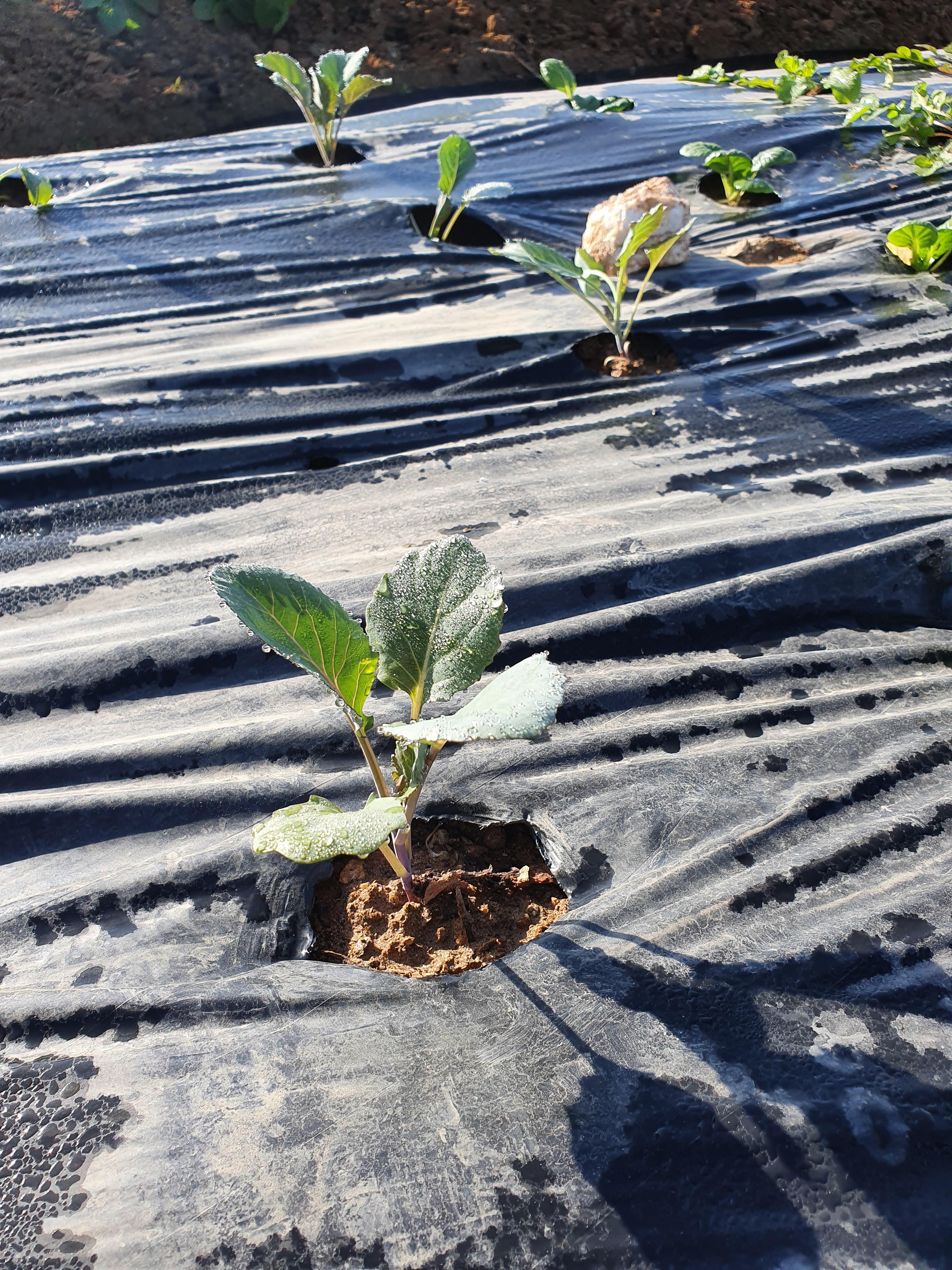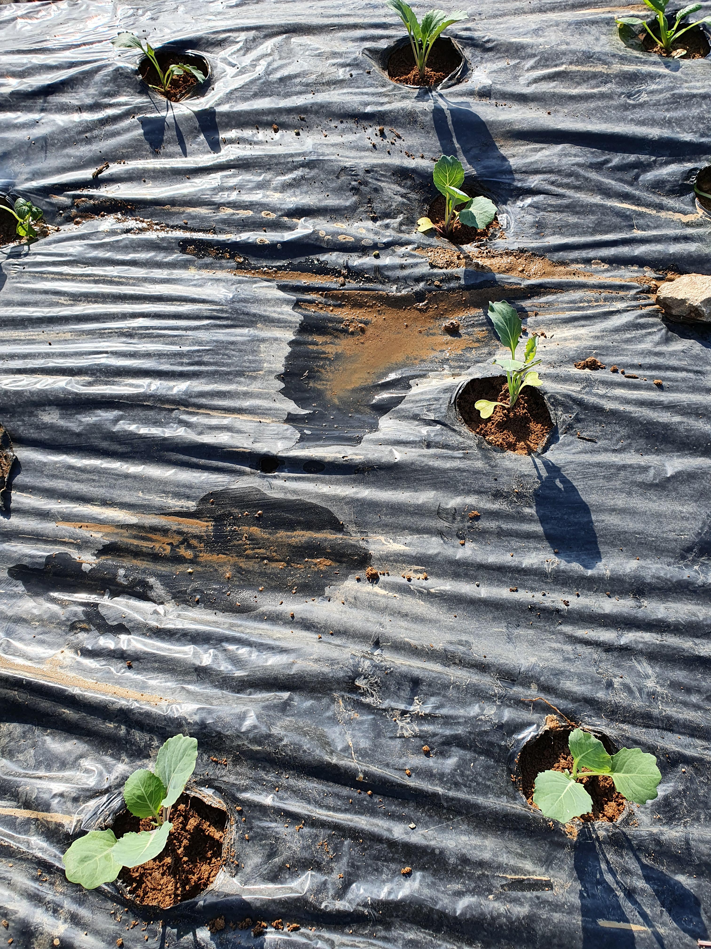 일단 기초적인 텃밭의 이랑을 만들고 , 멀칭비닐 및 멀칭비닐 구멍 뚫기를 완료한 상태에서 모종 심기를 진행하시면 되겠습니다.