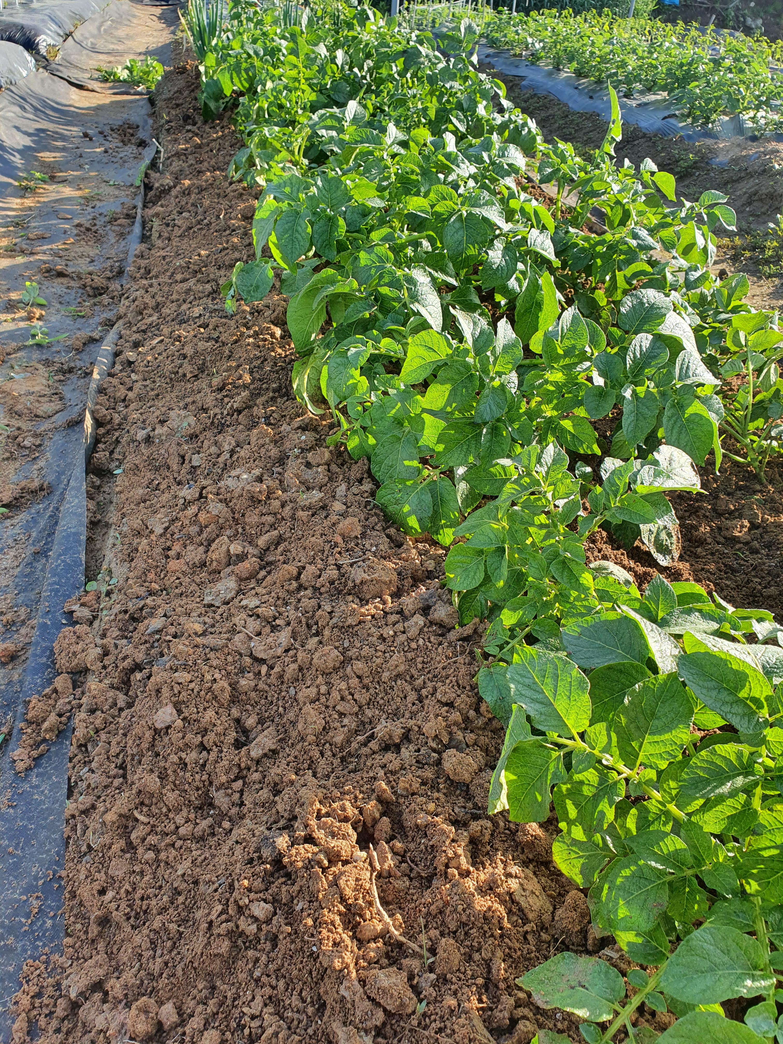 이렇게 흙을 고르고, 김매기를 하면서 잡초제거를 대부분 완료했고, 감자 주변에 북주기를 완료했으며, 불필요한 줄기까지 마무리된 감자밭 구역의 모습입니다.