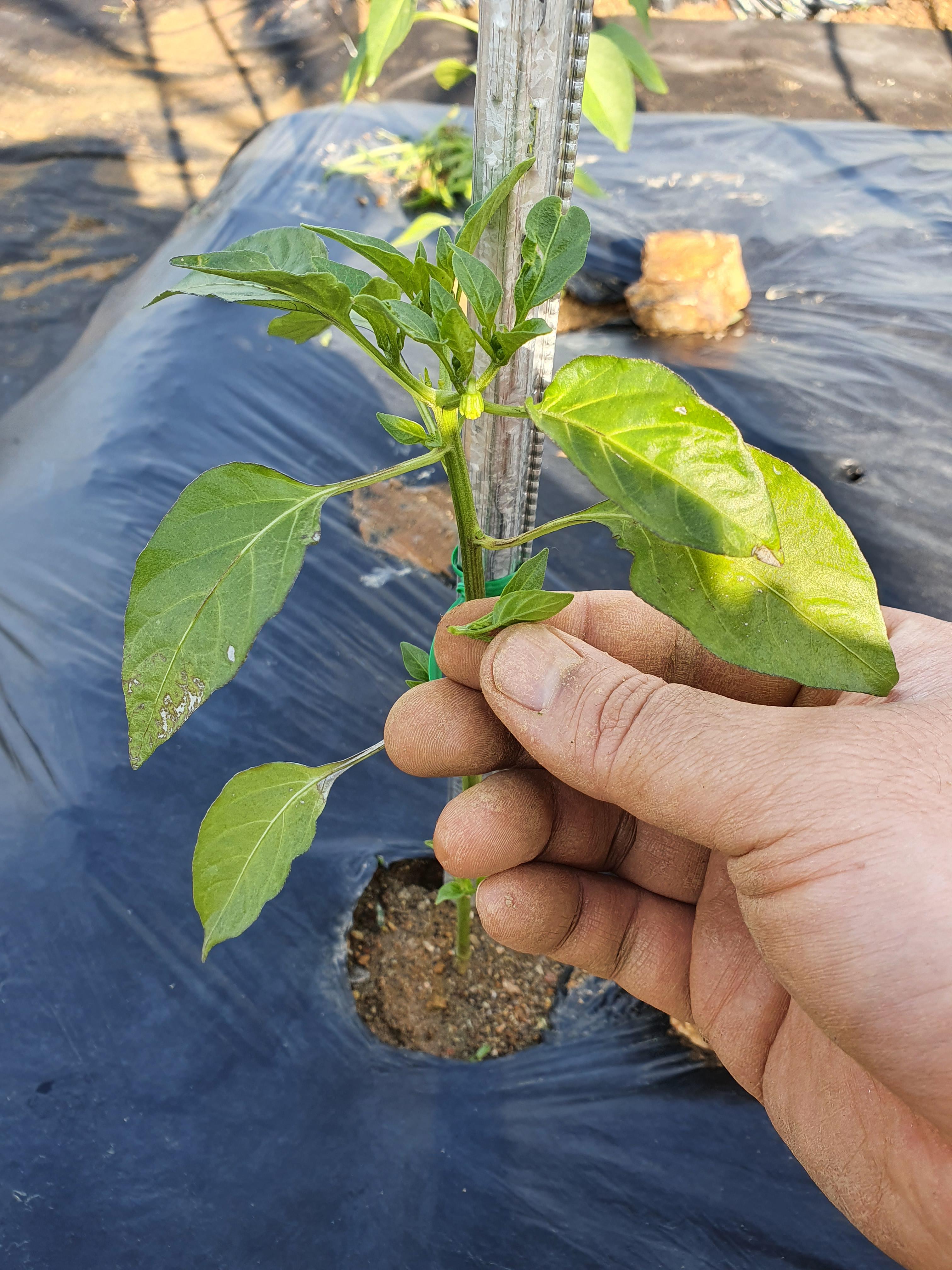 모든 고추들은 관리방법이 비슷합니다. 서있는 힘이 약하다 보니 지주대를 설치하여 넘어지지 않게 만들어 주는 것이 첫 번째요. 두 번째는 잘 자라날 수 있도록 곁순을 제거해주는 것~! 이것이 두 번째이겠네요.