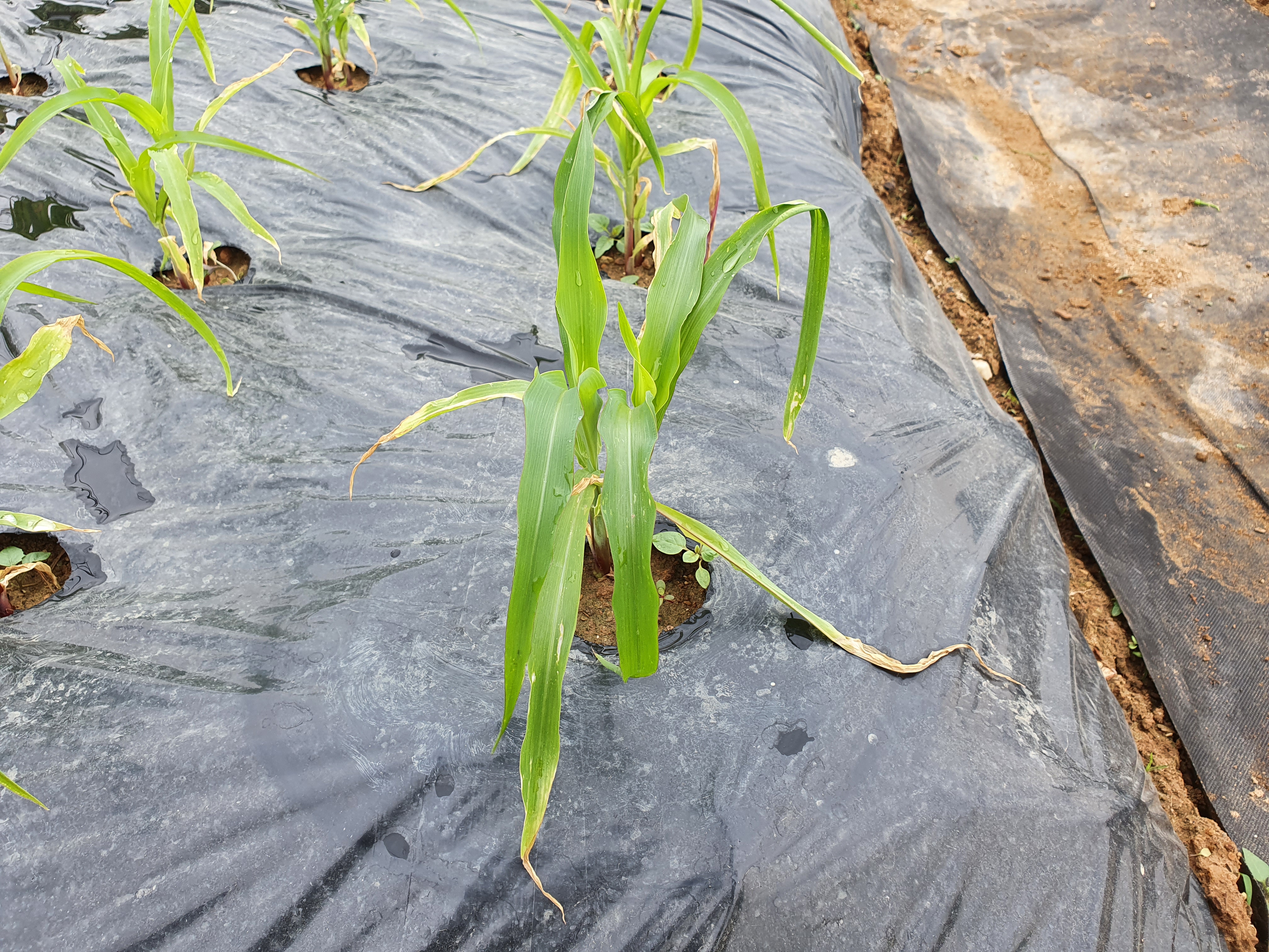 옥수수 모종을 살펴보니 잎들이 마르는 특징이 있었어요. 비가 많이 와서 수분이 부족했던 것도 아닐 테고, 바람이 분다고 해서 쓰러진 것은 없었던 옥수수 모종.