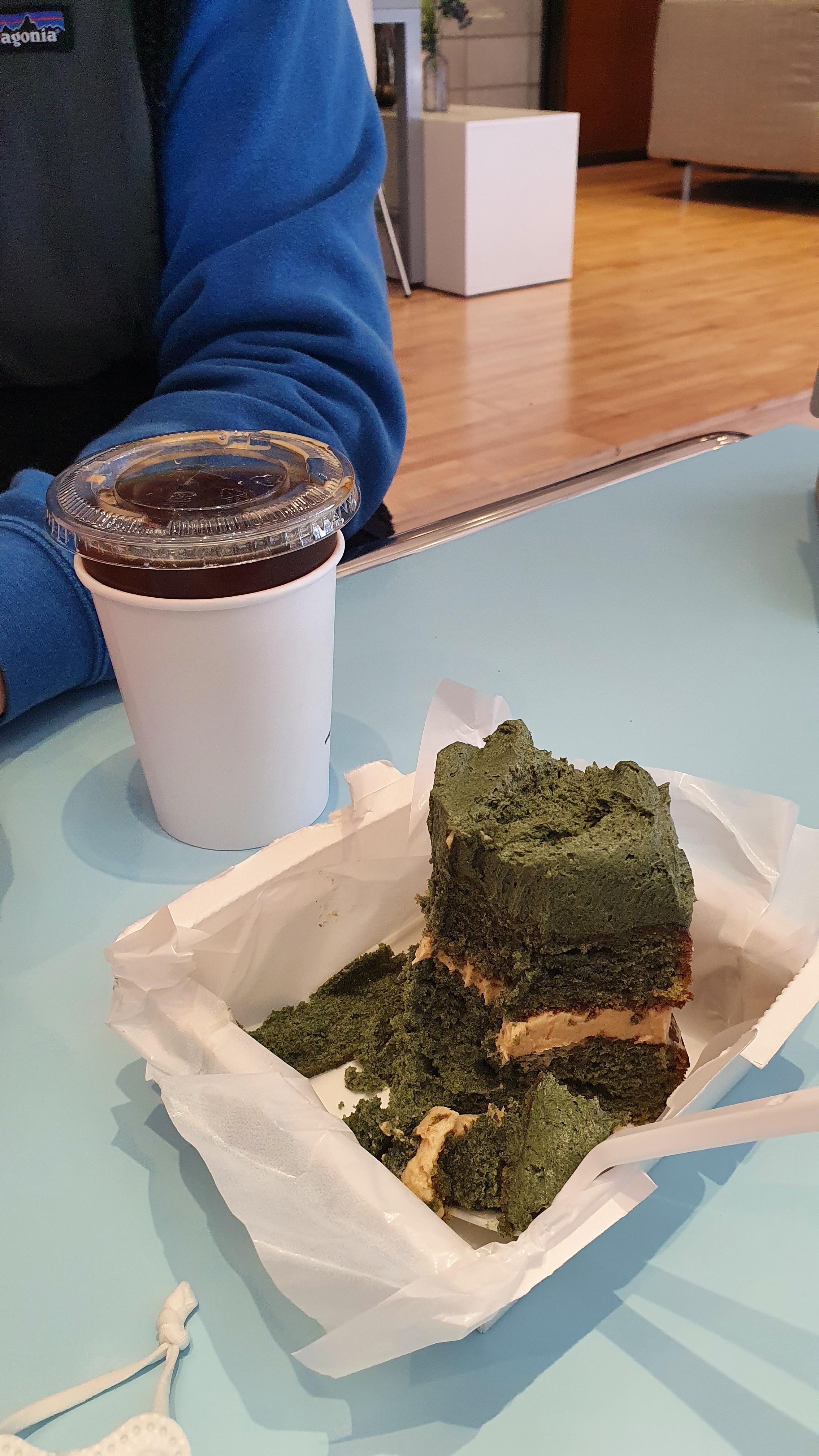 저희는 쑥인절미케이크와 아메리카노를 준비해서 별관으로 이동하여 먹었답니다.^^