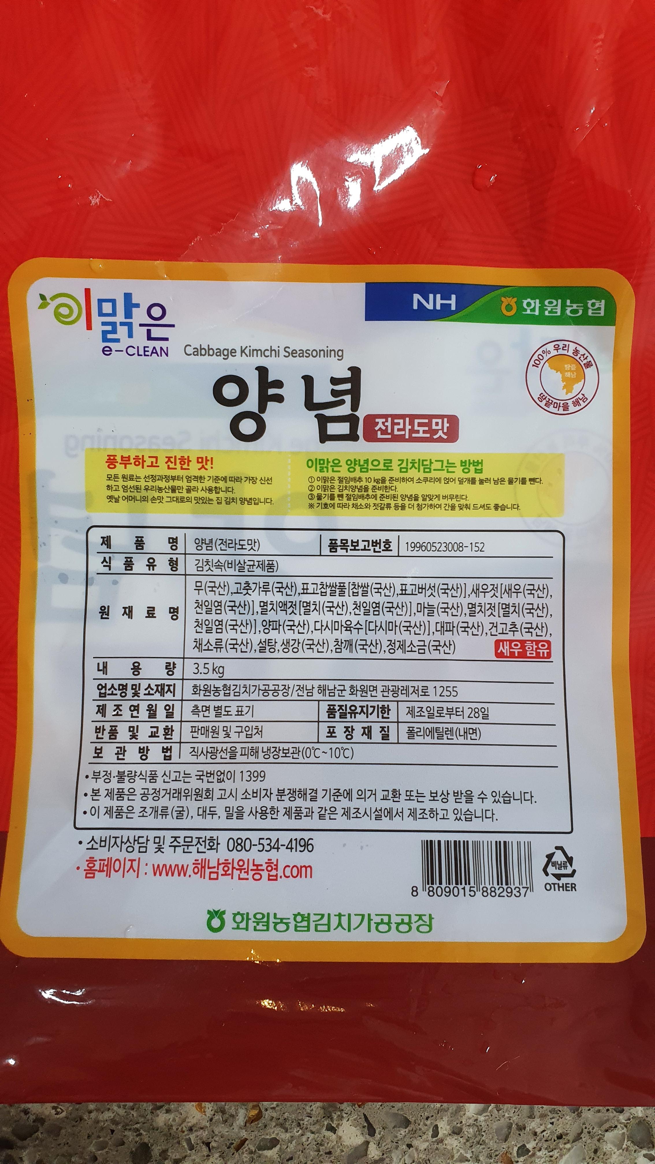 이 맑은 김치 (화원농협) 포장은 10KG 단위로 절임배추는 포장해서 도착했고, 김장양념은 3.5KG 단위로 포장이 이루어져서 왔습니다. ~