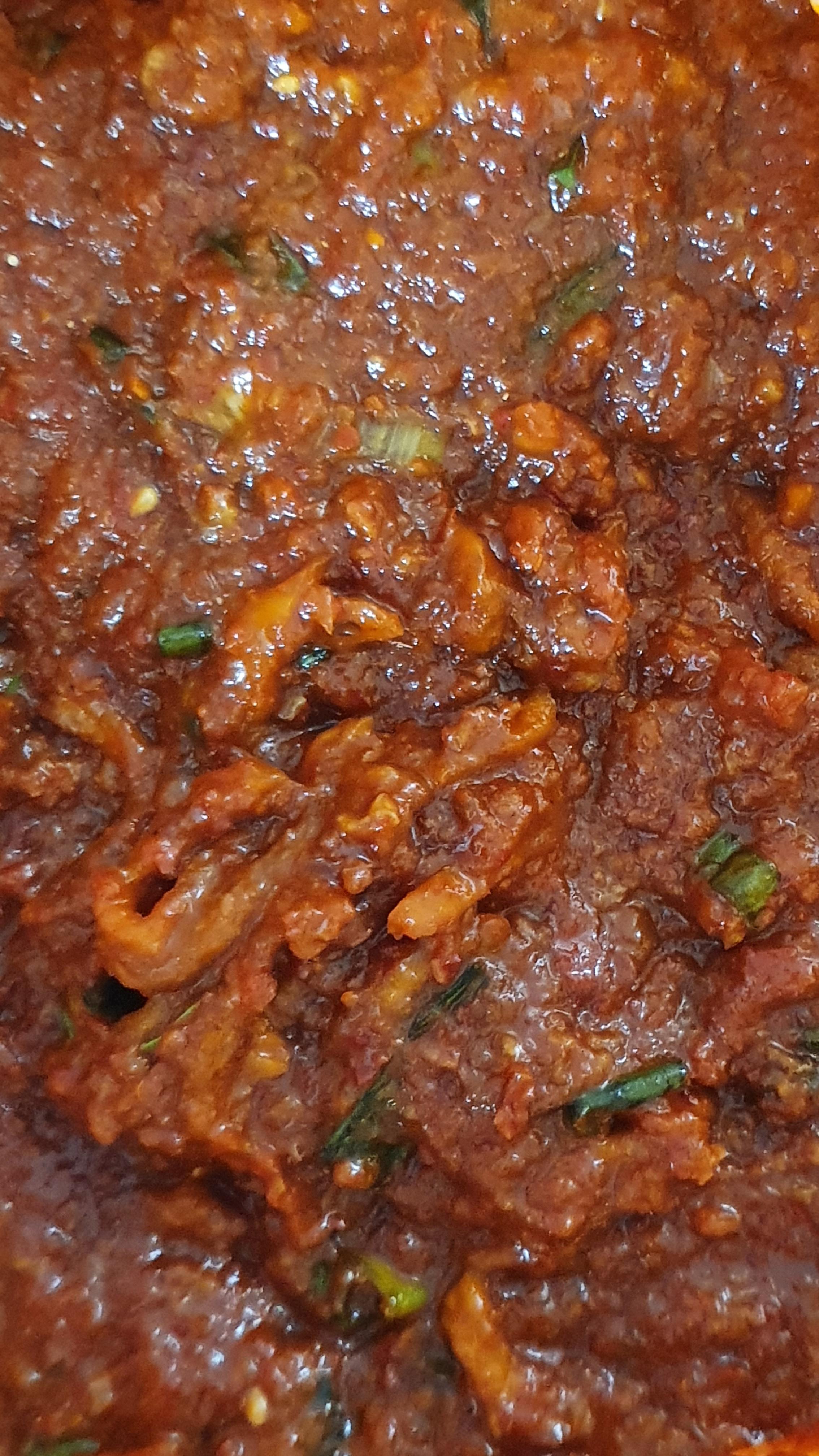 다음은 양념장~! 저는 저번 포스팅에서도 말씀드렸다시피 전라도 맛을 선택했는데요~ 전라도 맛은 멸치젓을 조금 더 첨가한 듯하더라고요~ 오픈하는 순간 젓갈 냄새가 맛있게 나는 게 ~ 아 빨리 김장 끝내고 겉절이와 함께 먹고 싶다...