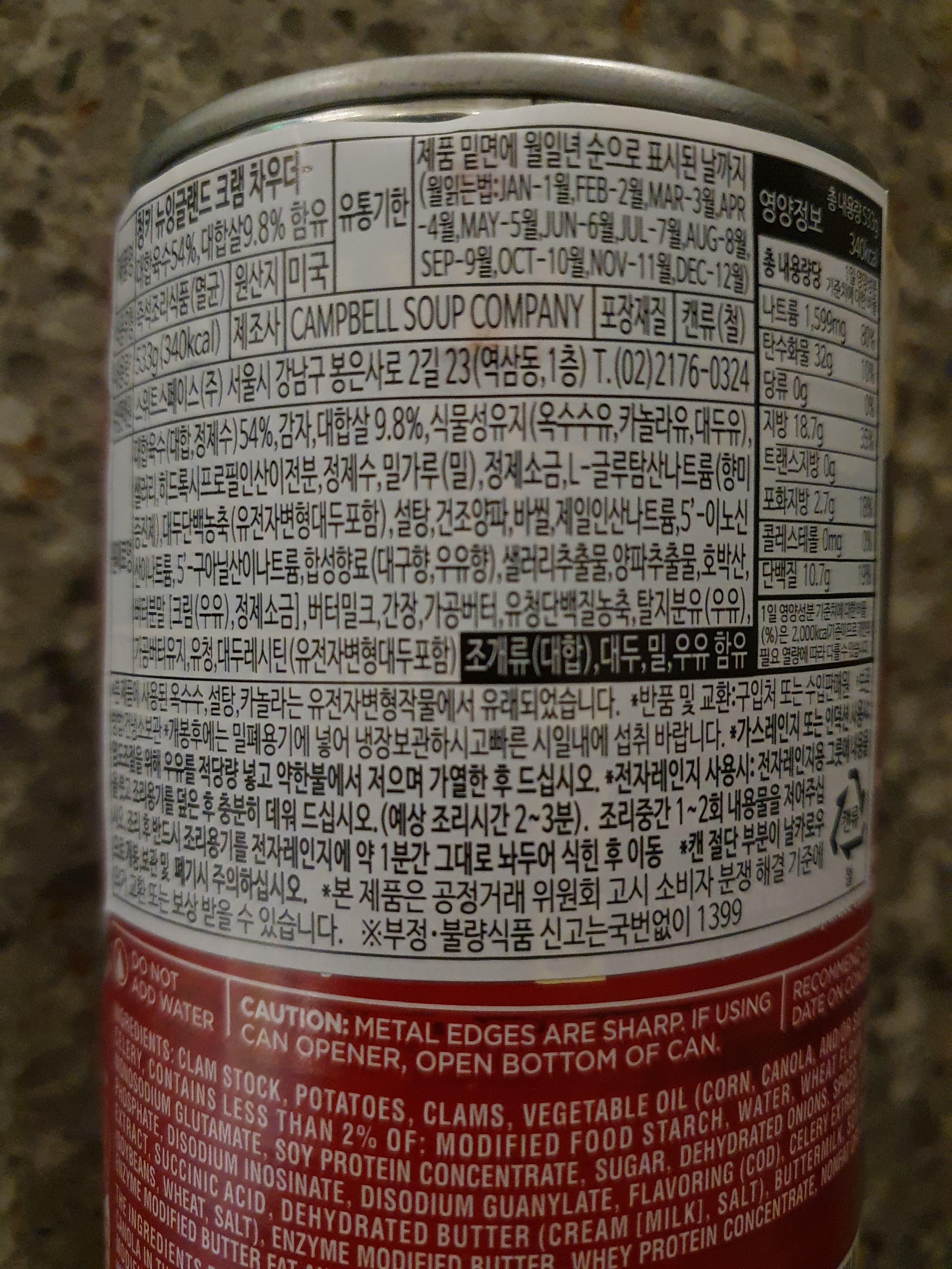 캠벨 청키 뉴 잉글랜드 크램차우처 조개 수프인데요~!