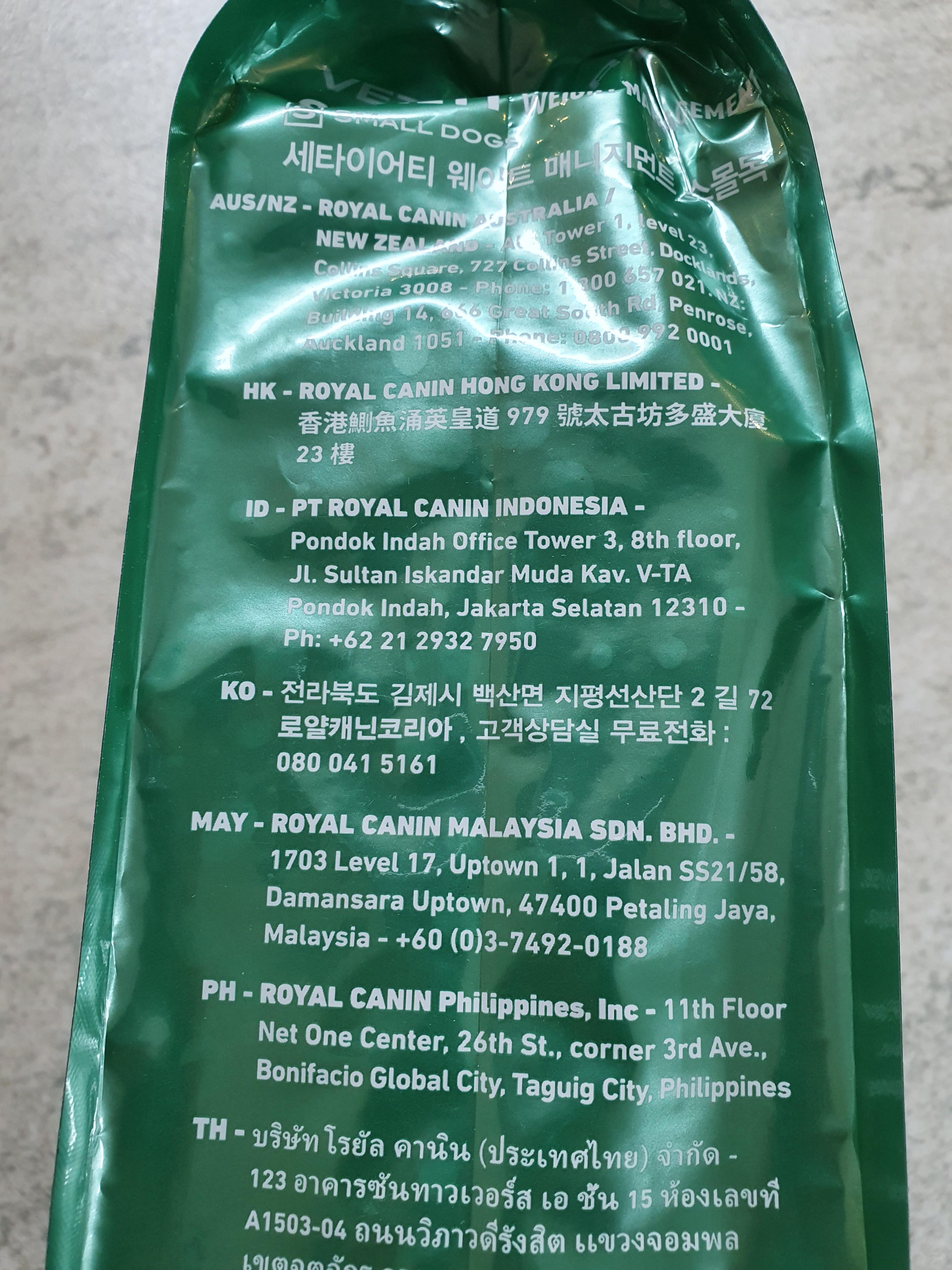 일단 로얄캐닌 사료 포장은 4면에 가득 적혀있어요~ 앞면 뒷면 부터!
