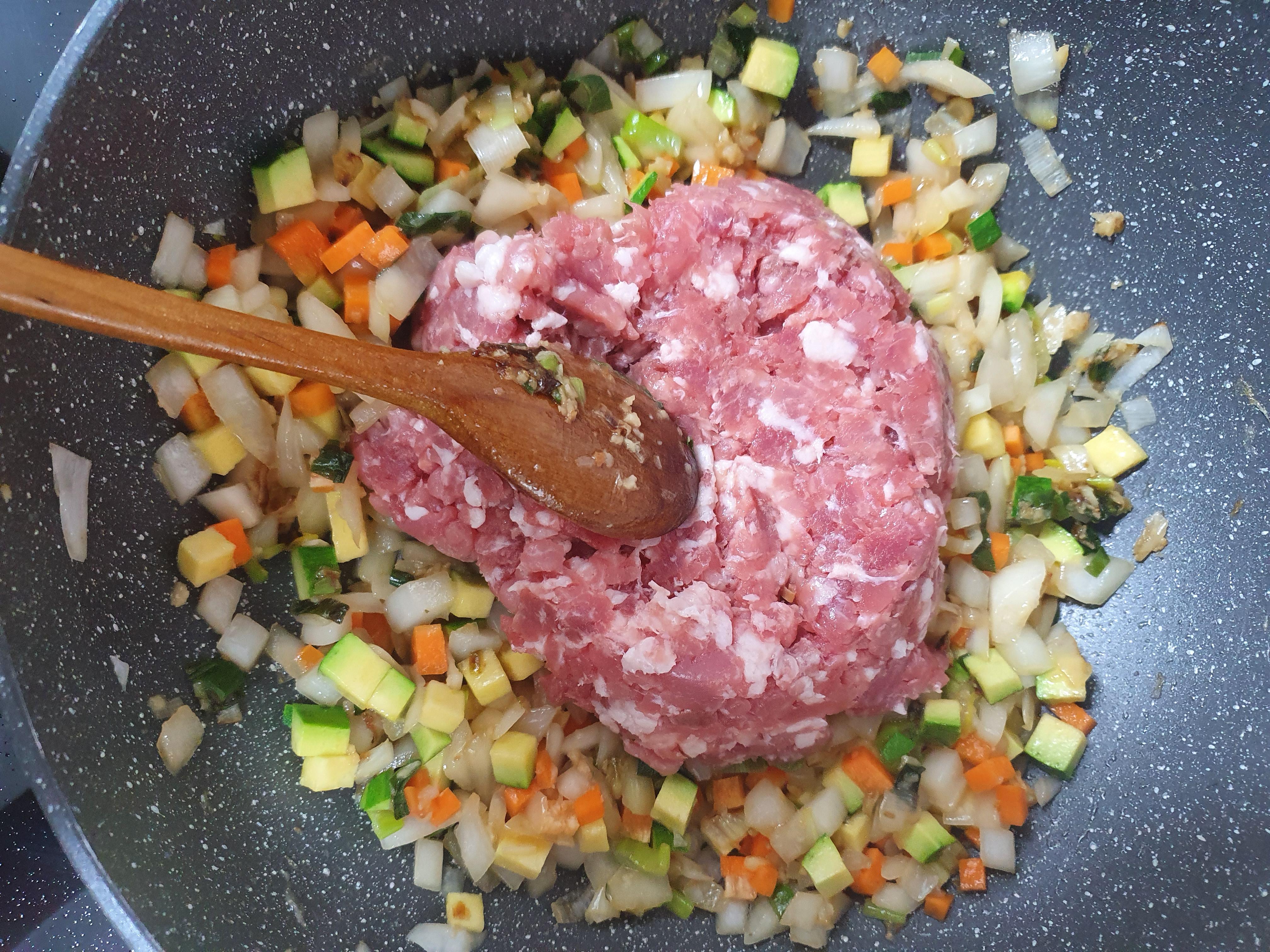 2. 잘 볶아진 파와 마늘 위에 양파 + 당근 + 호박을 추가로 볶아준다.