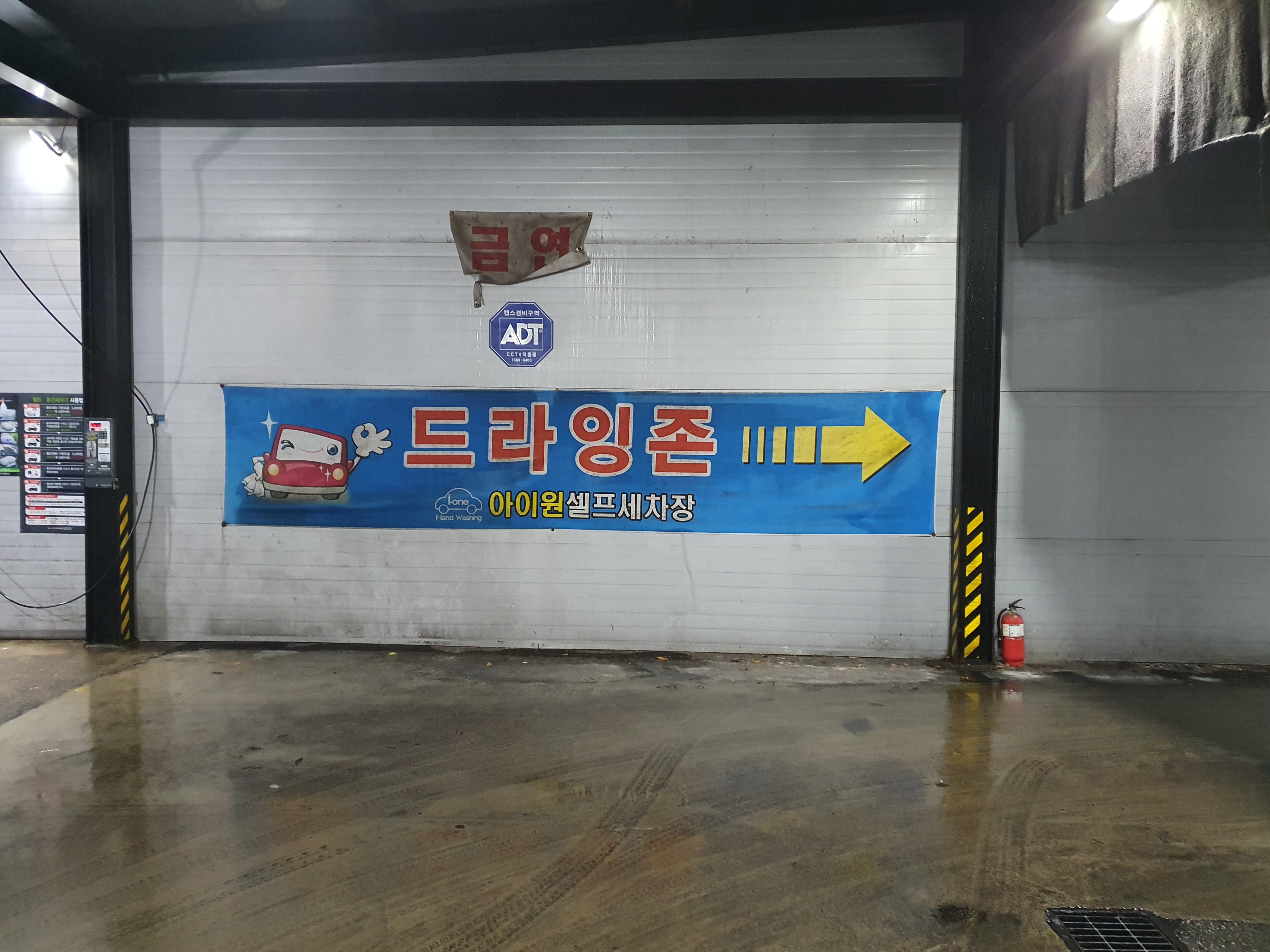 세차장 앞까지 오시면 이렇게 문이 닫혀있어요~! 하지만 차량을 가까이 대시면 입구가 자동으로 열리게 되니 당황하지 마시고 세차장 자동문이 열릴 때까지 기다리시면 좋겠습니다. 세차장 안쪽에서 나오는 차량이 있을 수 있으니 조심하시면서 말이지요~^^