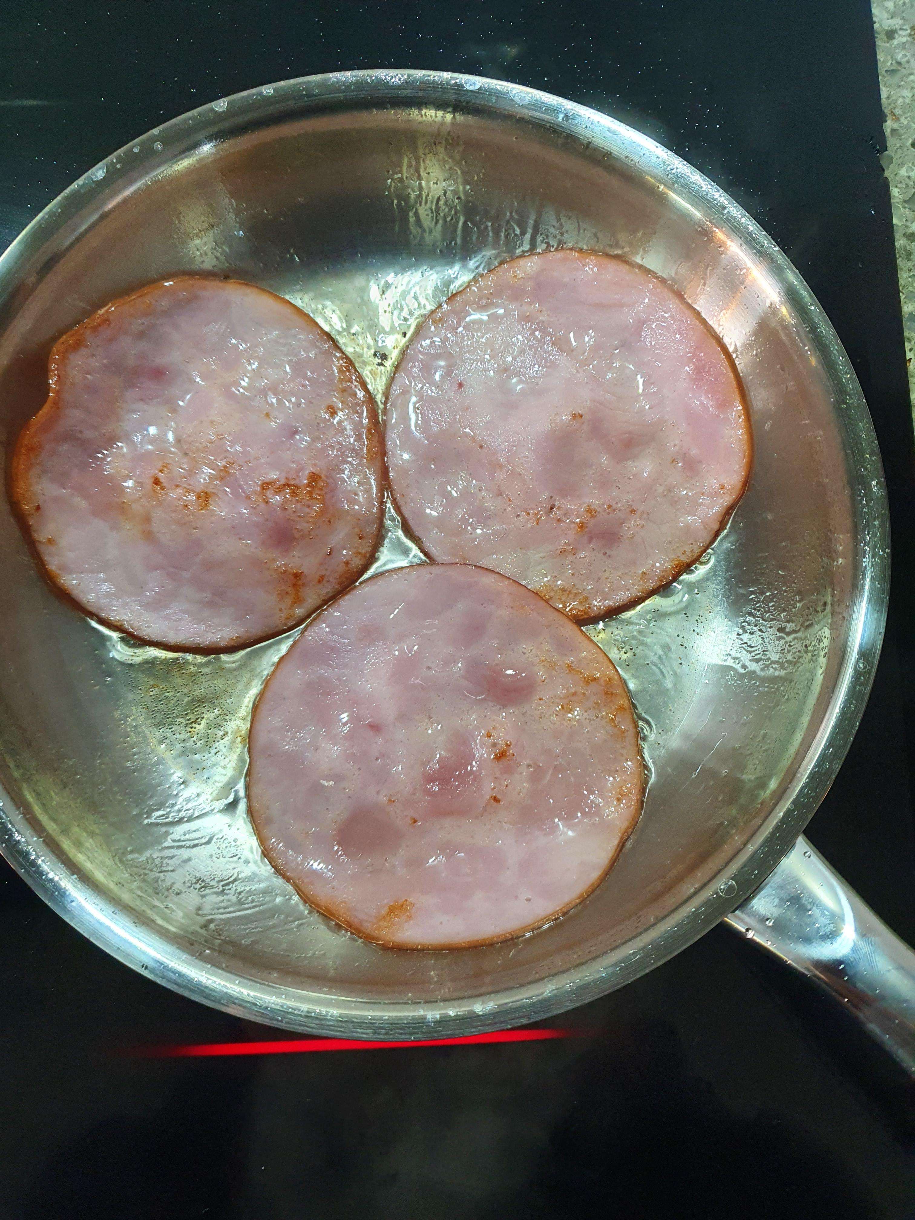 샌드위치에 얹을 슬라이스 햄을 살짝 구워 줍니다~^^ 햄이 들어가야 그래도 샌드위치 느낌 나잖아요~^^