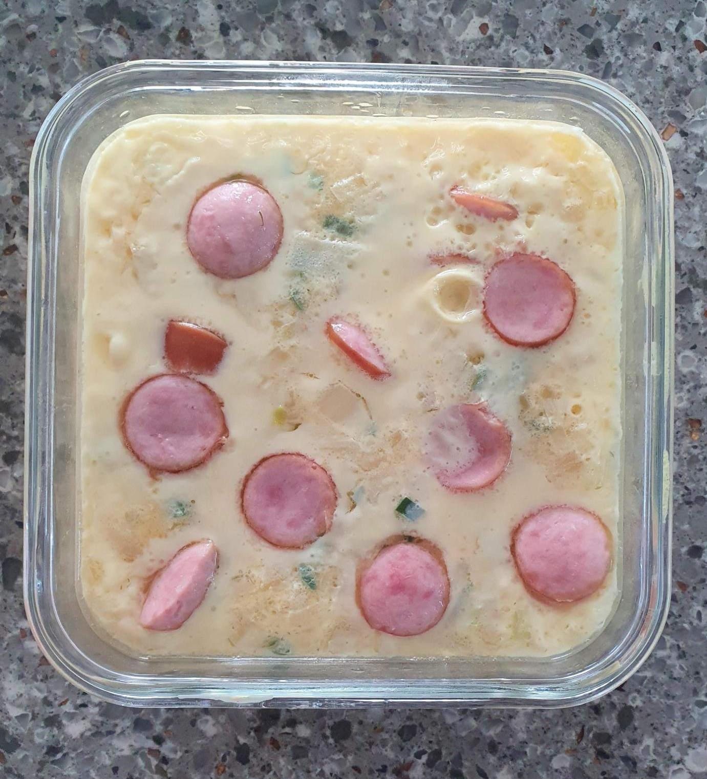 계란물을 찜기에 올려놓고 끝났다~ 기다리면 되겠네 라는 생각을 갖고 있는데 아이가 와서는 특별 주문으로 소시지를 꼭 넣어달라고 합니다... 이런이런... 그래서 고명 형태로 소시지를 긴급 수혈했어요~^^
