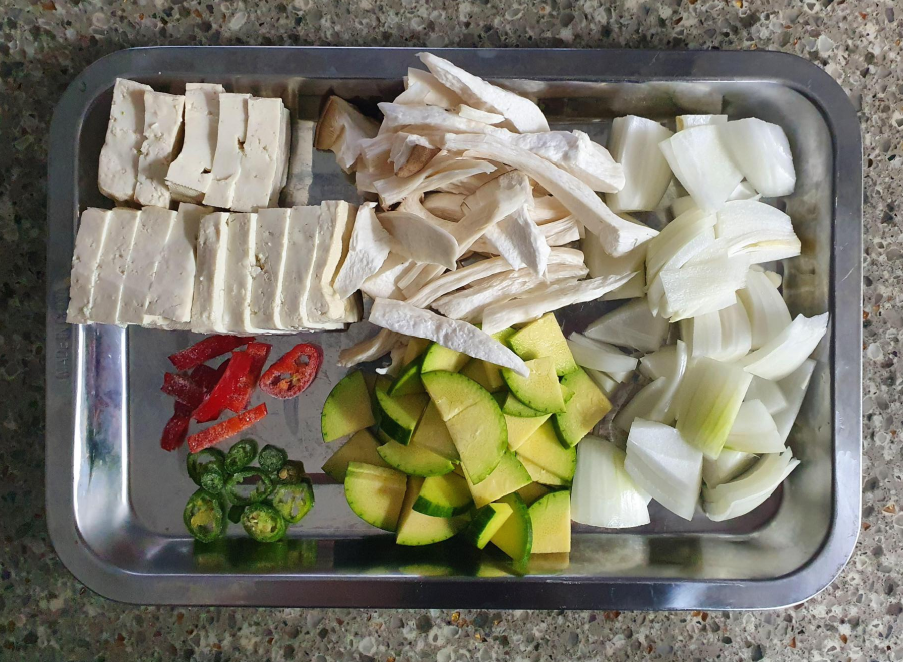 재료는 엄청 간단해요. 양파 / 버섯 / 호박 / 두부는 모두 찌개용으로 먹기 편한 사이즈대로 커팅해주시면 재료준비는 모두 끝납니다~^^ . 청양고추와 홍고추는 미리 썰어서 냉동실에 보관하면서 필요한 만큼 꺼내 쓰시면 더욱 편하게 사용이 가능해요~ 모두모두 미리미리 준비준비 ~^^