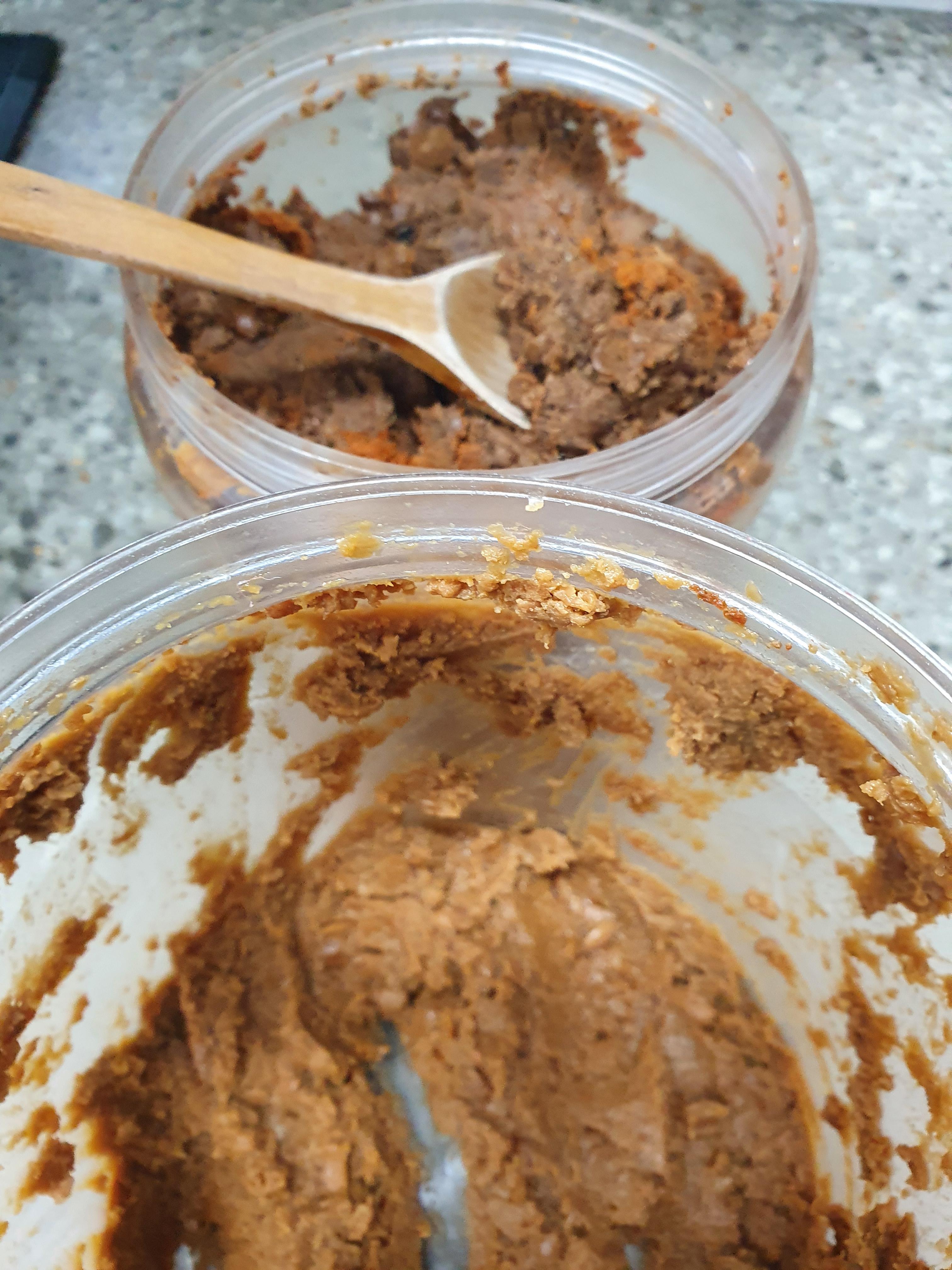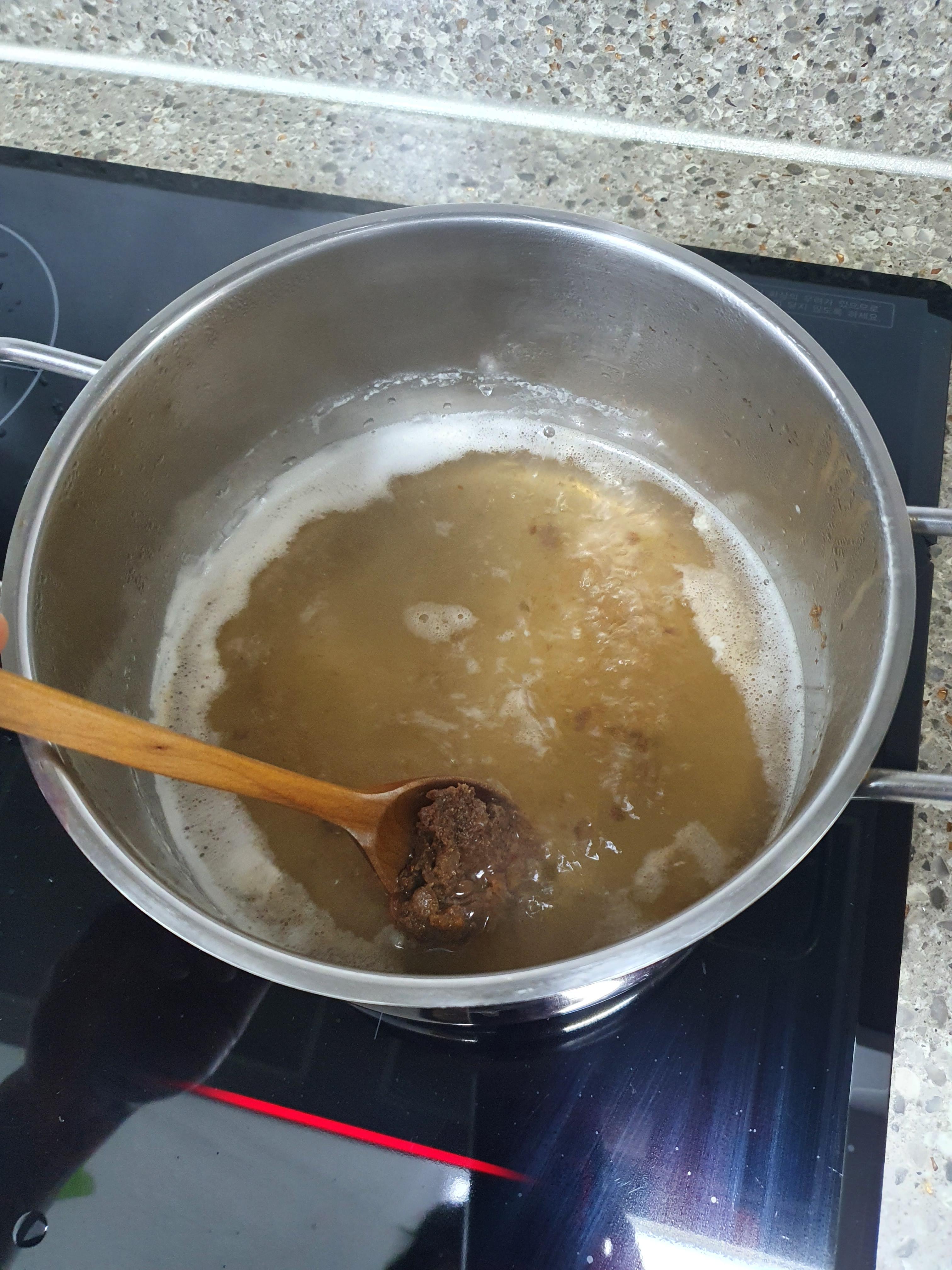 저는 된장을 두개 사용하고 있어요. 재래식 된장을 주문해서 사용하는게 1개 이고요. 어머니께서 직접 담그신 막장이에요. 강원도 분들은 모두 아시겠지만 막장... 색이 짓고 맛이 깊습니다. 어느분은 막장이 텁텁하다고 하시는데 전 많이 먹어서 그런지 텁텁한 맛을 잘 모르겠더라구요~ 아무튼 ~ 된장 + 막장을 섞어서 넣어줄꺼에요~